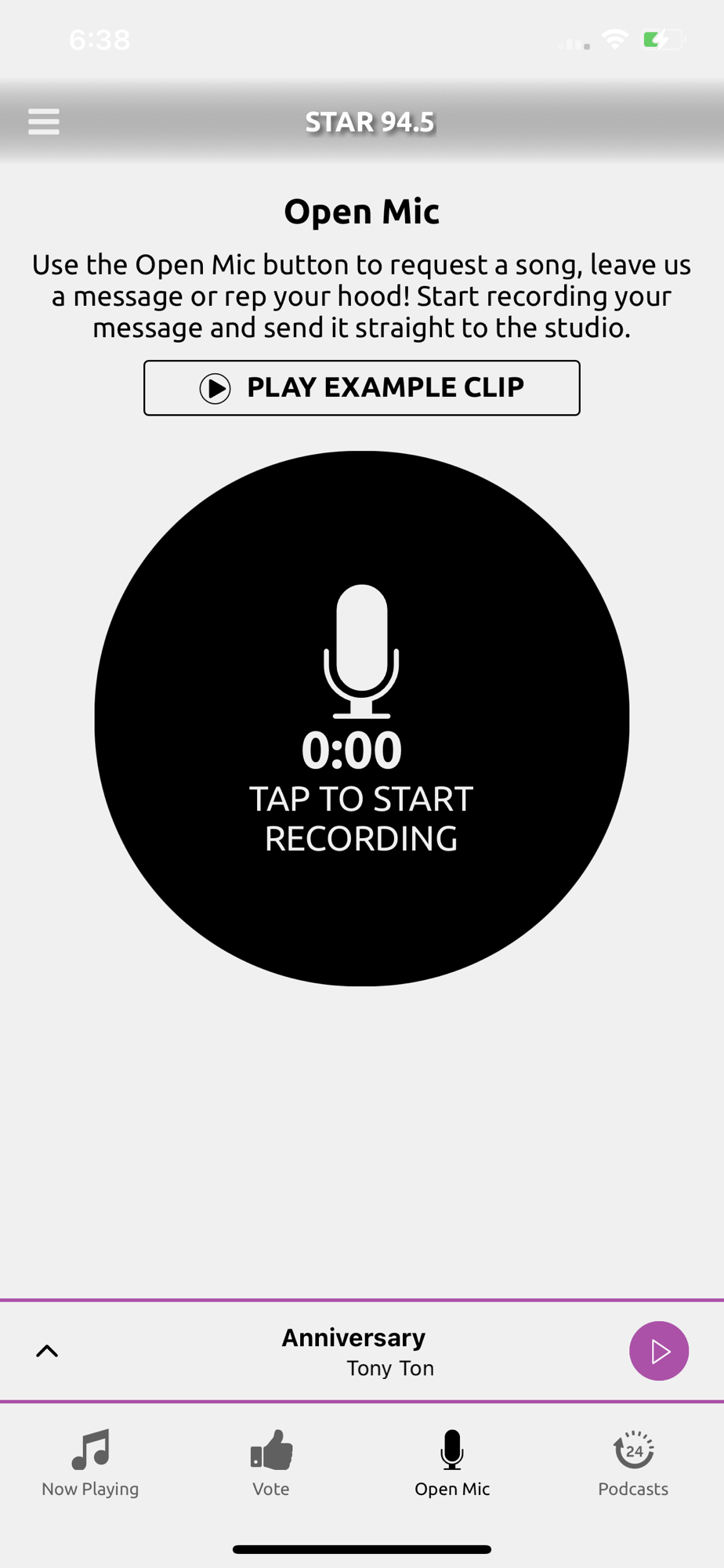 This app allows you to hear STAR 94.5 live 24/7, vote on the music that you want to hear from your favorite STAR artists, record a message to play on air with our “Open Mic” feature, set up reminders/alarms with custom recorded messages from your favorite STAR DJ’s & Artists, and more!