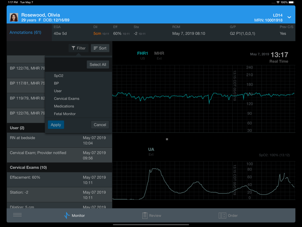 • Fetal tracing can be viewed when user is in the annotation summary view