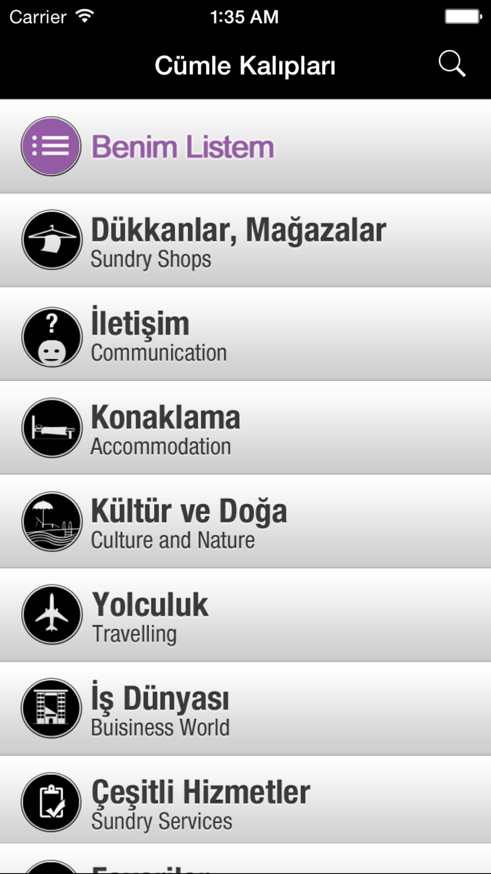 - Bana özel menüsü kullanarak yeni kelime veya cümle kalıplarınızı ekleyerek kendi listenizi de oluşturabilirsiniz.