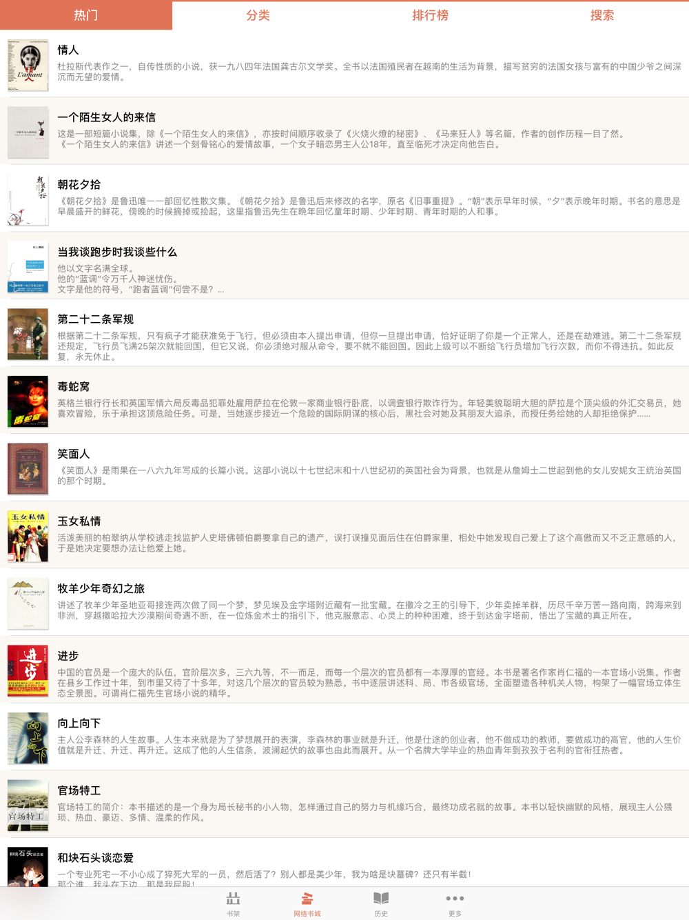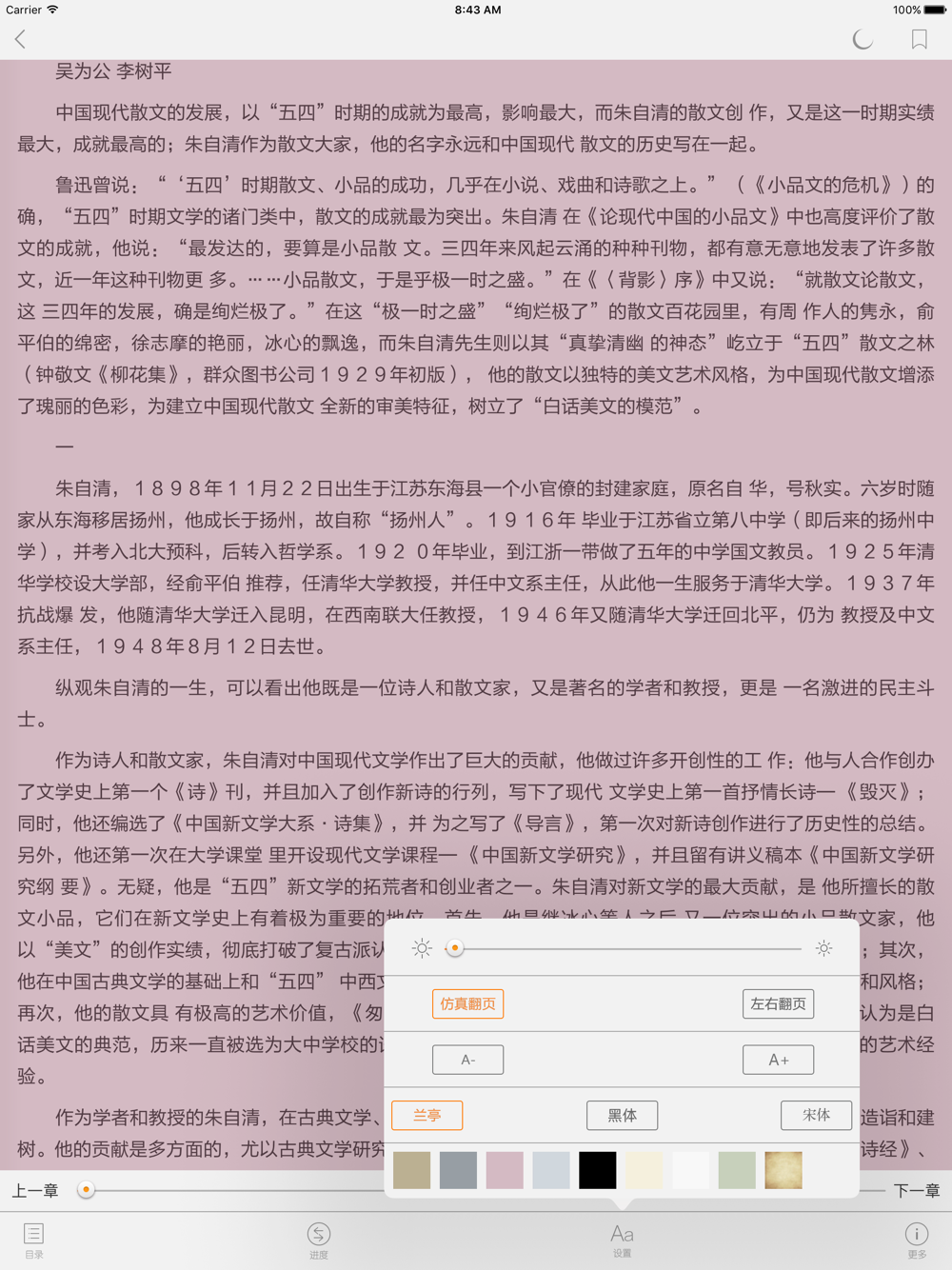 三、逼真的翻页效果,书签收藏,目录浏览,智能记忆上次阅读位置,亮度调整,白天/夜间模式等最符合书友阅读习惯的贴心设计;