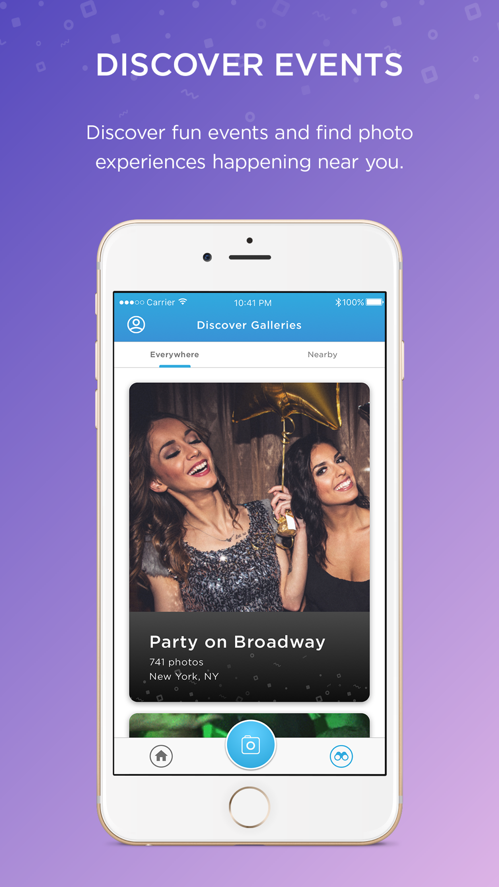 * Photos taken with the app or at events using Simple Booth automatically sync to your personal photo feed.