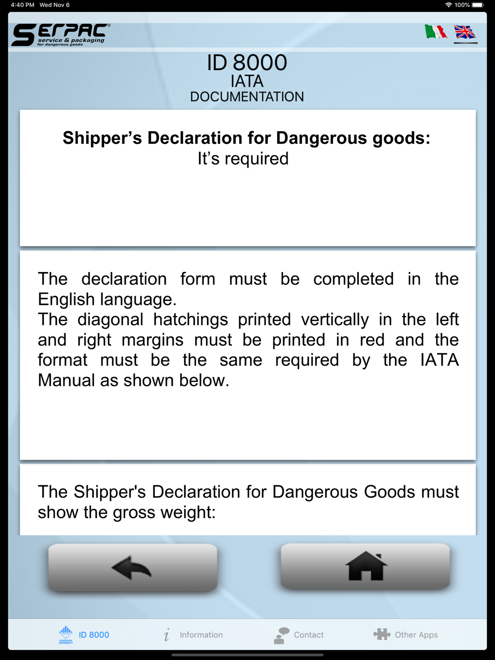 ID8000 is an application that, through guided steps, will allow you to prepare your shipment of ID8000 - CONSUMER COMMODITY in accordance with the requirements of ICAO/IATA Regulations (by air).