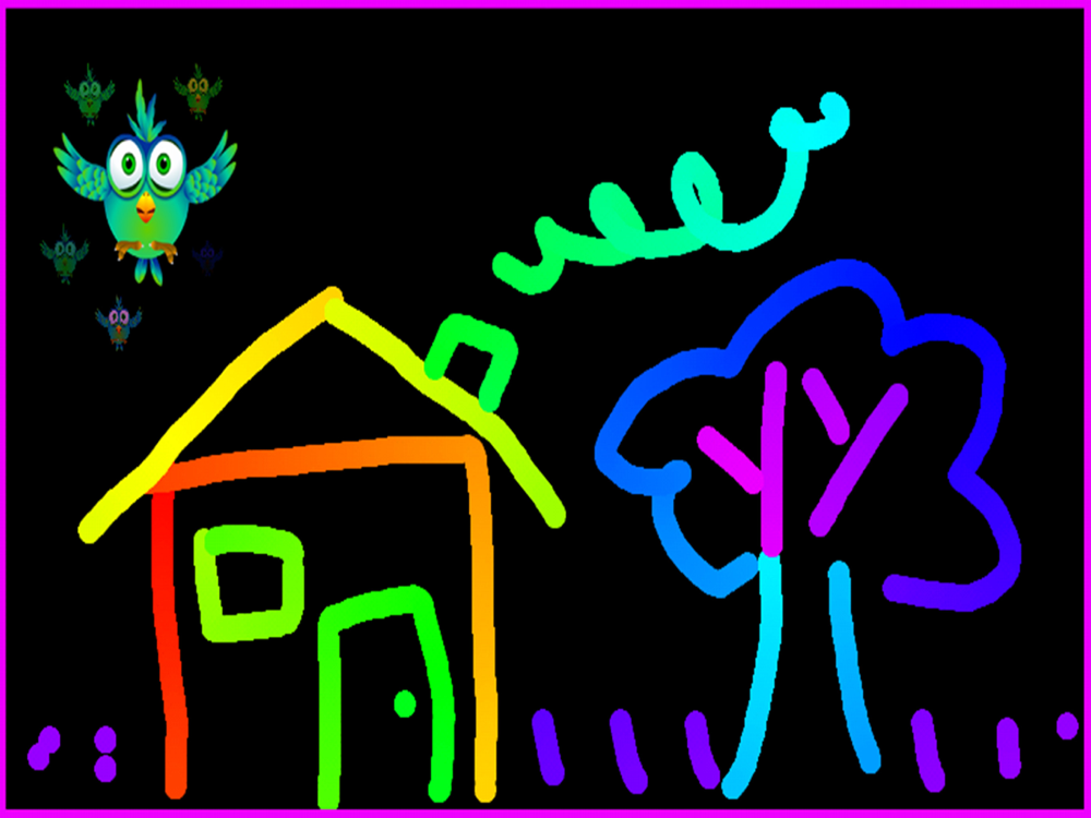 While the baby does not paint, he/she can enjoy the funny animation of the bird (“kidoko”), and even interact with it by touching it.
