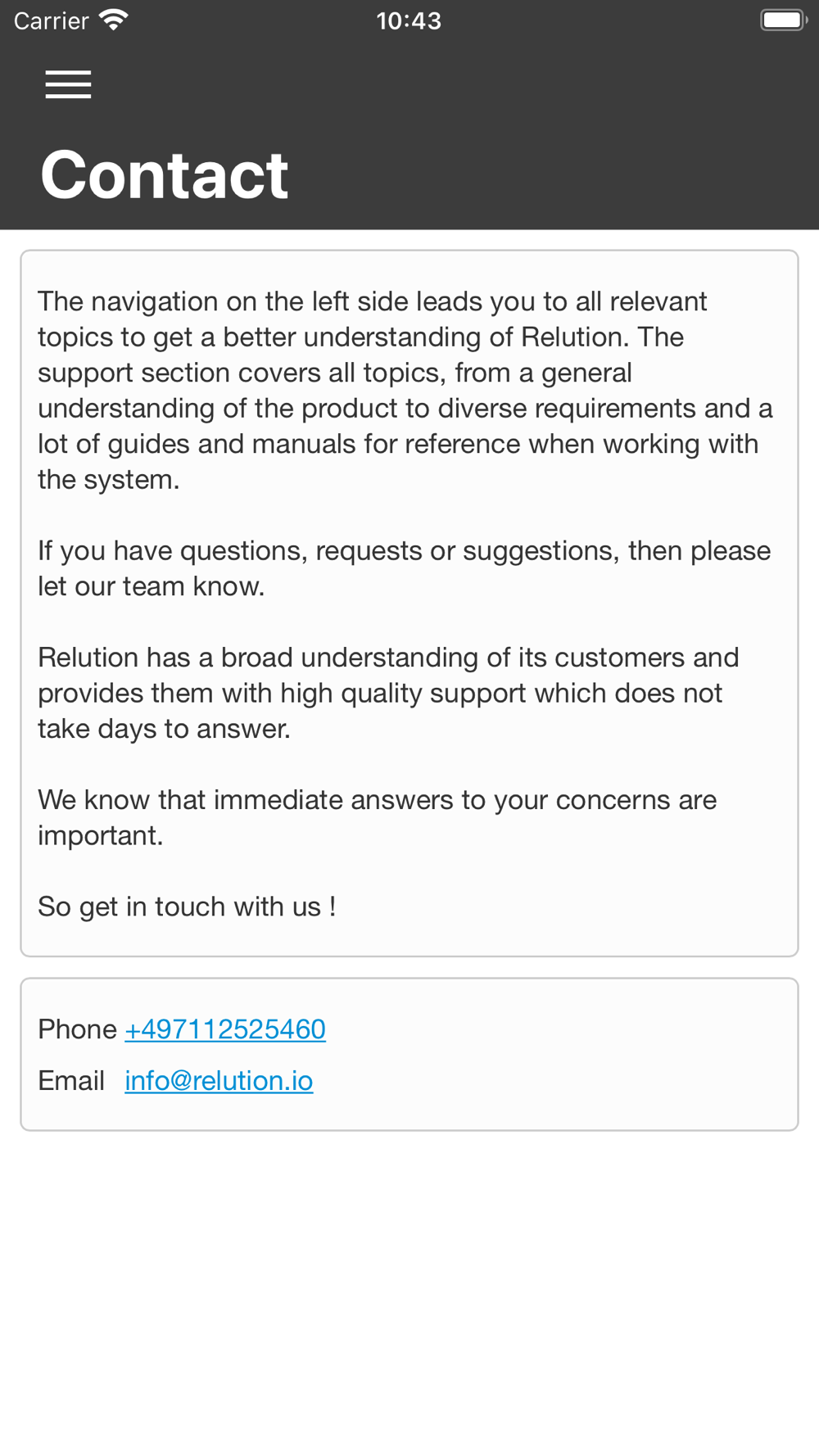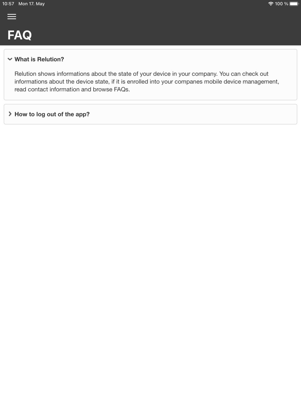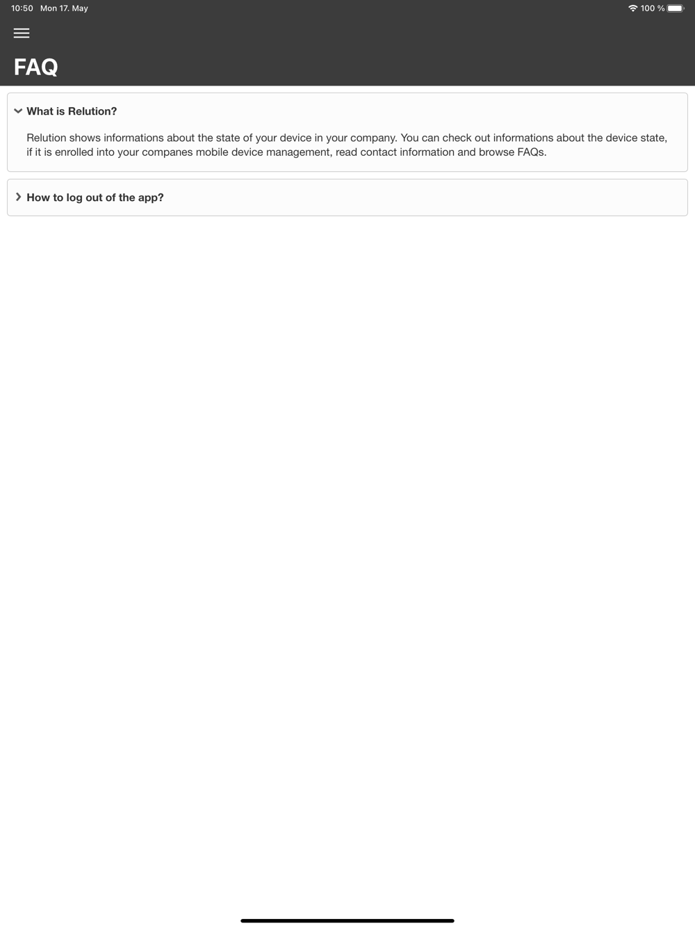 NOTE: Please contact your IT administrator before installing Relution on your device. The Relution app will not be usable without the necessary backend software and the appropriate credentials.