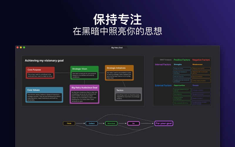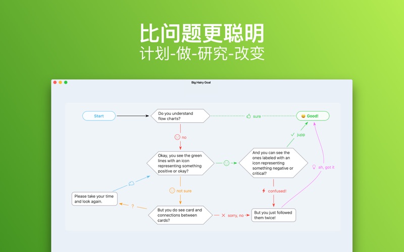 Big Hairy Goal支持你的创造性思维过程,寻找最佳方法的策略,完成事情并最终实现你的目标。