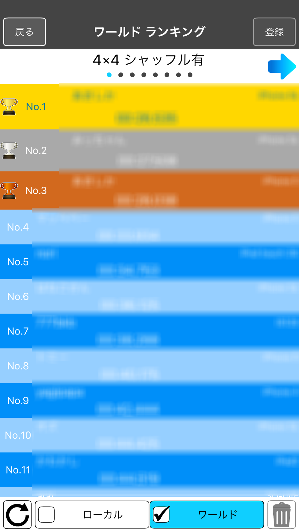 ・1列4〜7枚のカードの配置と、シャッフルの有無が選べる、全8種類のモードがあります。