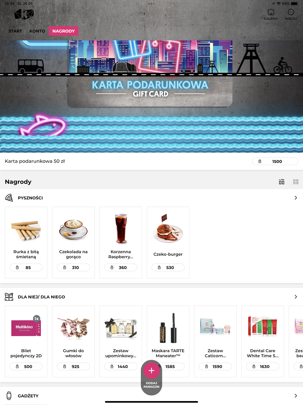 W dostępnym katalogu nagród znajdziesz również zakładkę z wyjątkowymi promocjami do sklepów Galerii Katowickiej oraz instytucji kulturalnych na terenie Katowic i miast ościennych.