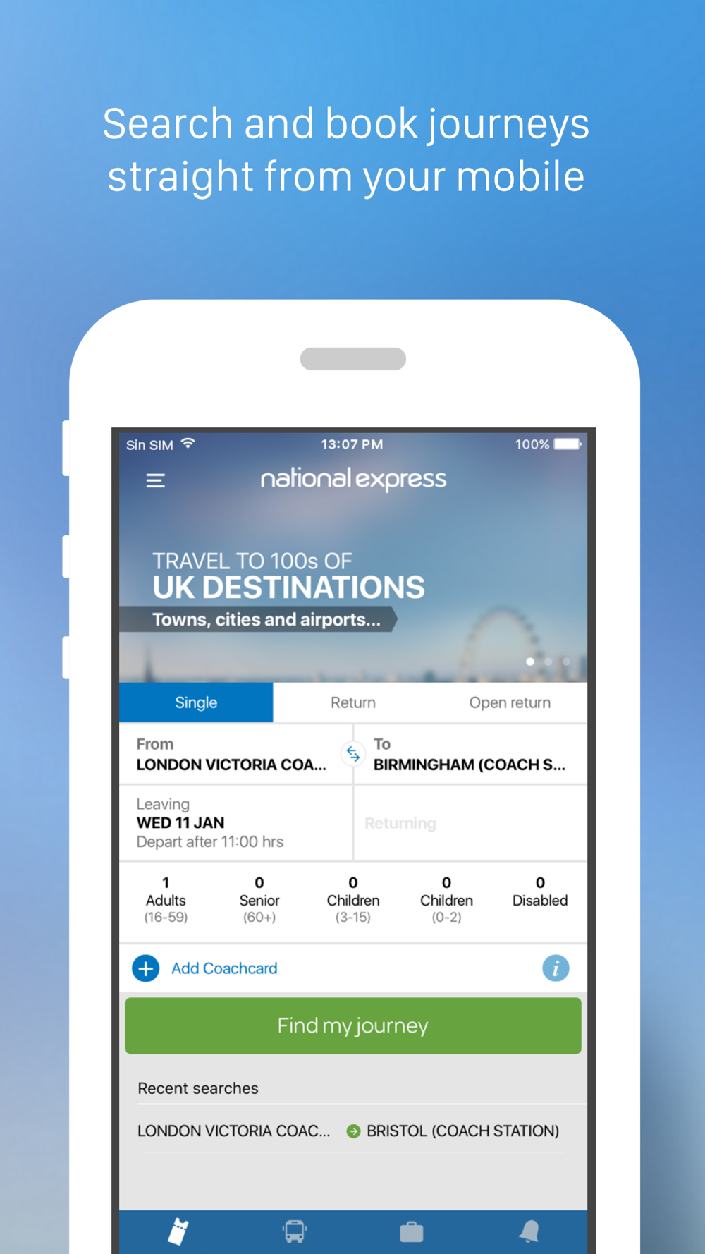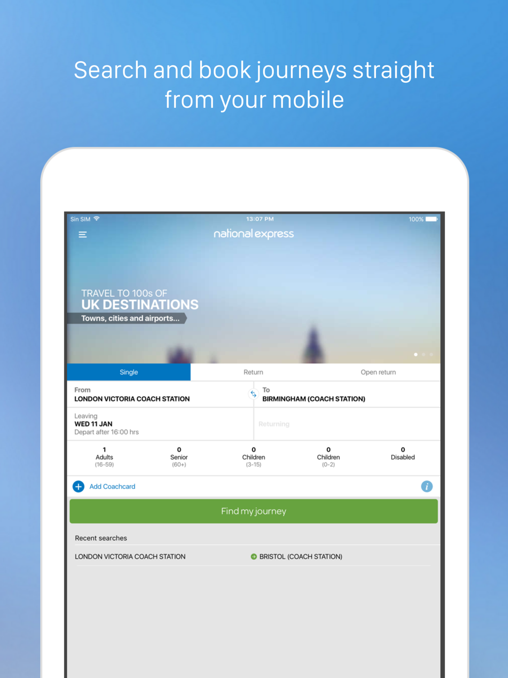 - Search and book coach travel to 100's of UK towns, cities and airports on the go