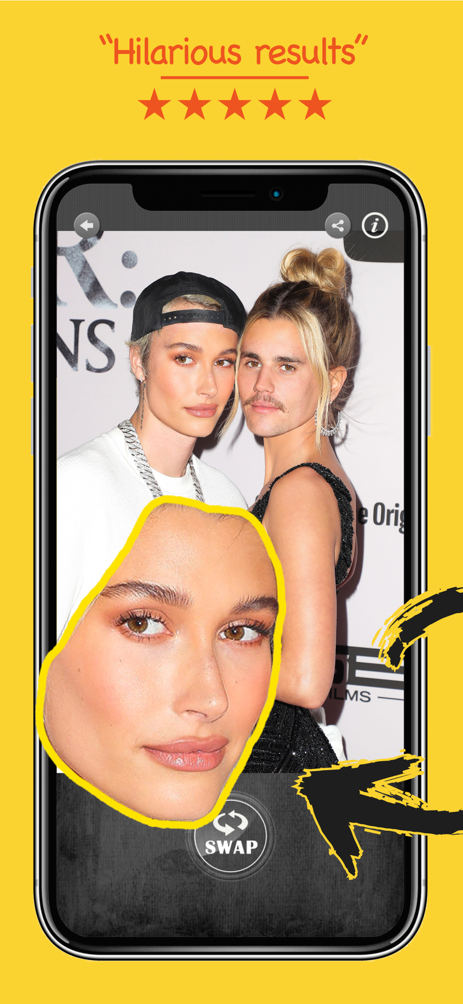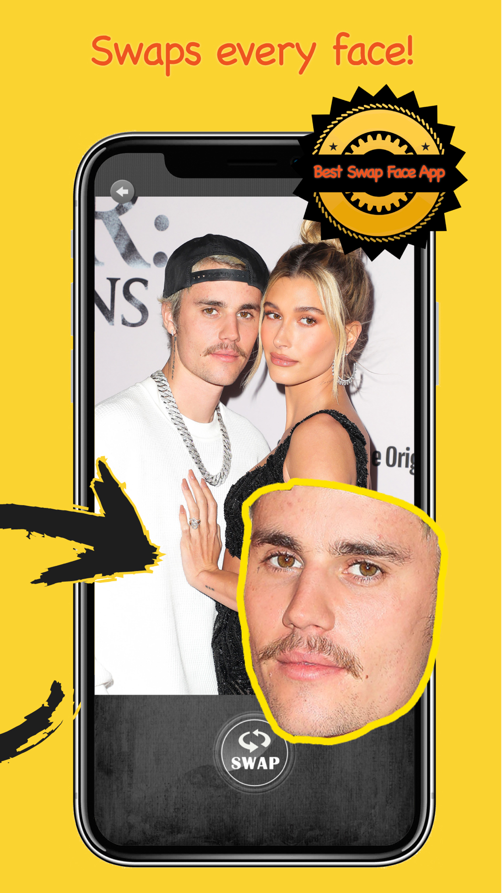 Swap Face is a very popular app that allows you to swap 2 faces between two people in a photo.
