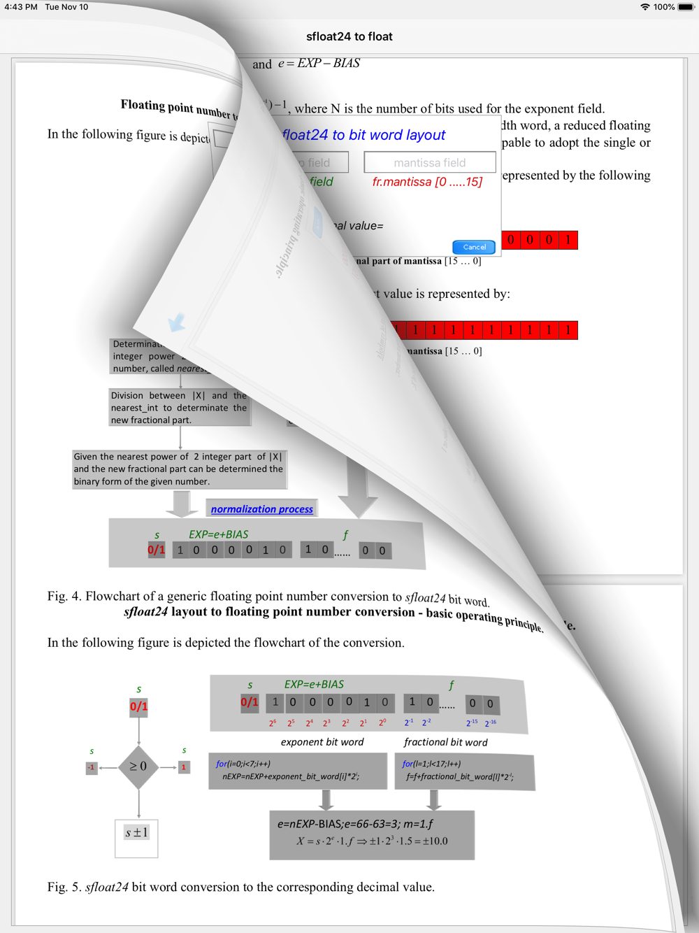 This tool shows the conversion of floating-point numbers, or decimal numbers, to the corresponding bit word and vice-versa. It has been conceived starting by considering the IEEE 754 standard of 1985 and has been implemented a short version of floating-point number representation, called sfloat24. It is very useful to understand as any calculator stores a decimal number in its registers.