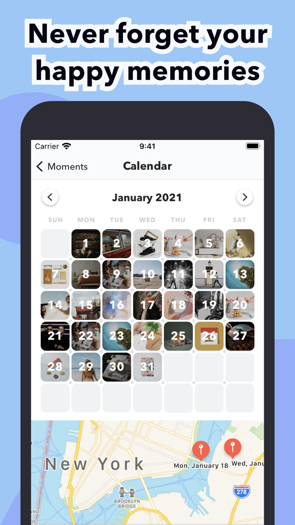 Your moments are only visible to you and never posted publicly. All cloud syncing is securely encrypted using HTTPS endpoints. You can create a passcode lock for extra security (Touch and Face ID supported).
