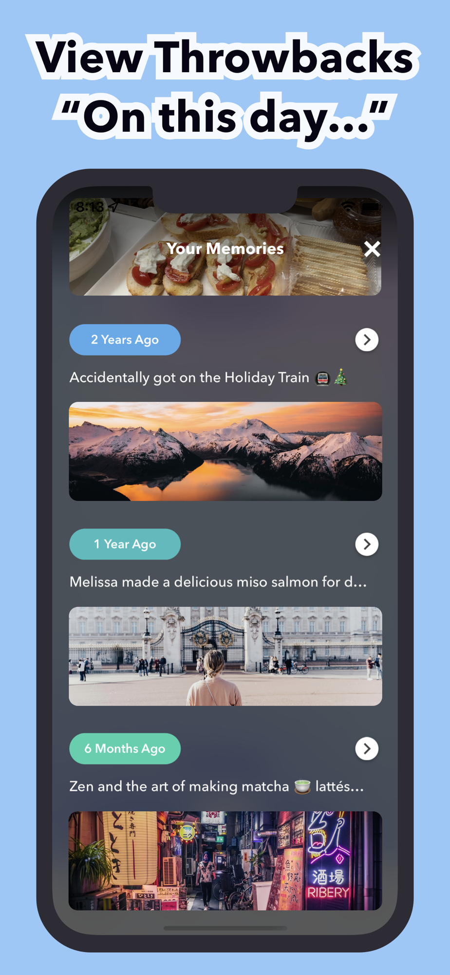 After one week, you can hop back to memories in your gratitude journal from a week ago. This period grows to months and even years. After two weeks, you can view random moments using the Gratitude Jar. Each month, create a recap video of your favorite photos and clips.