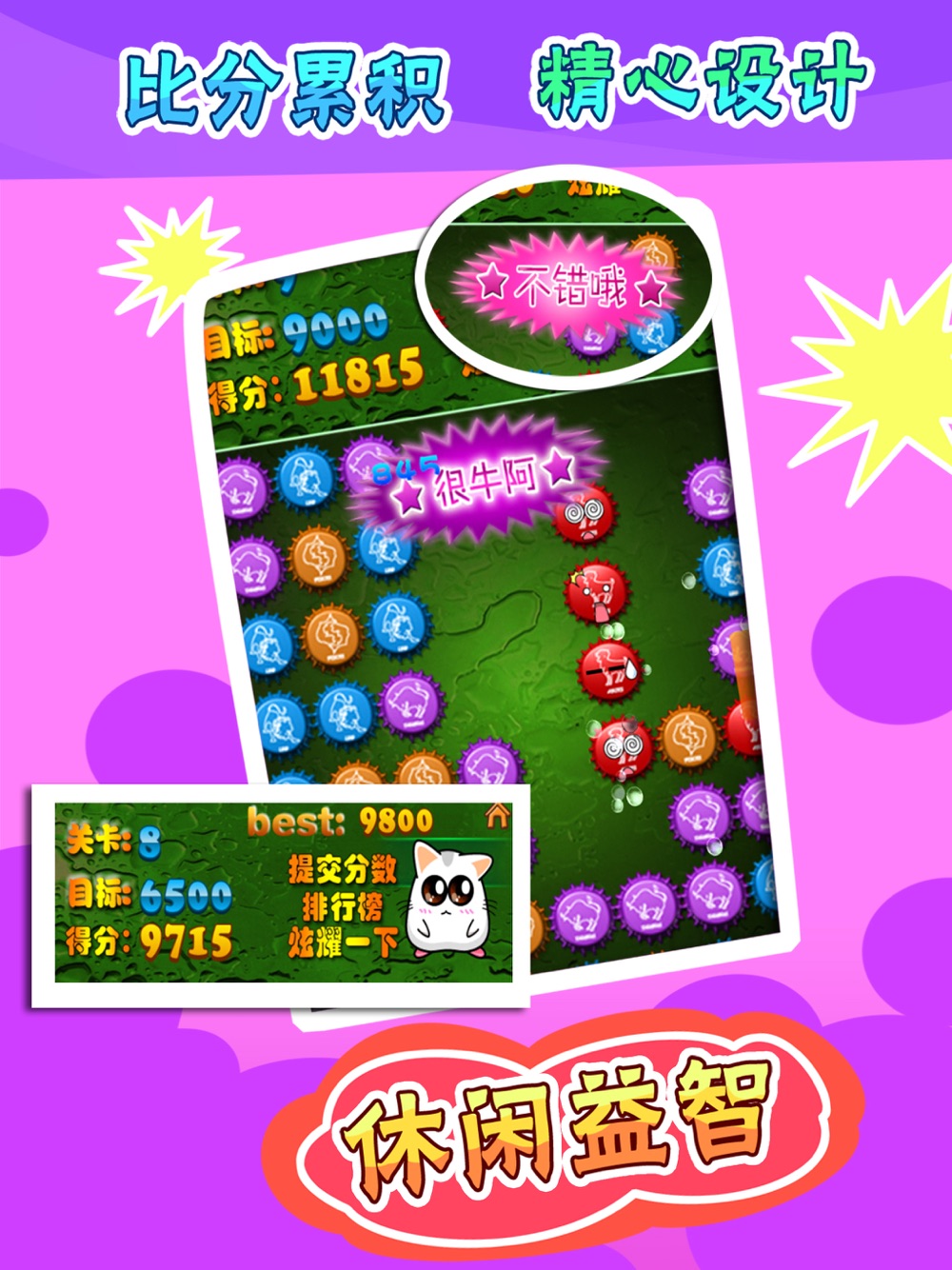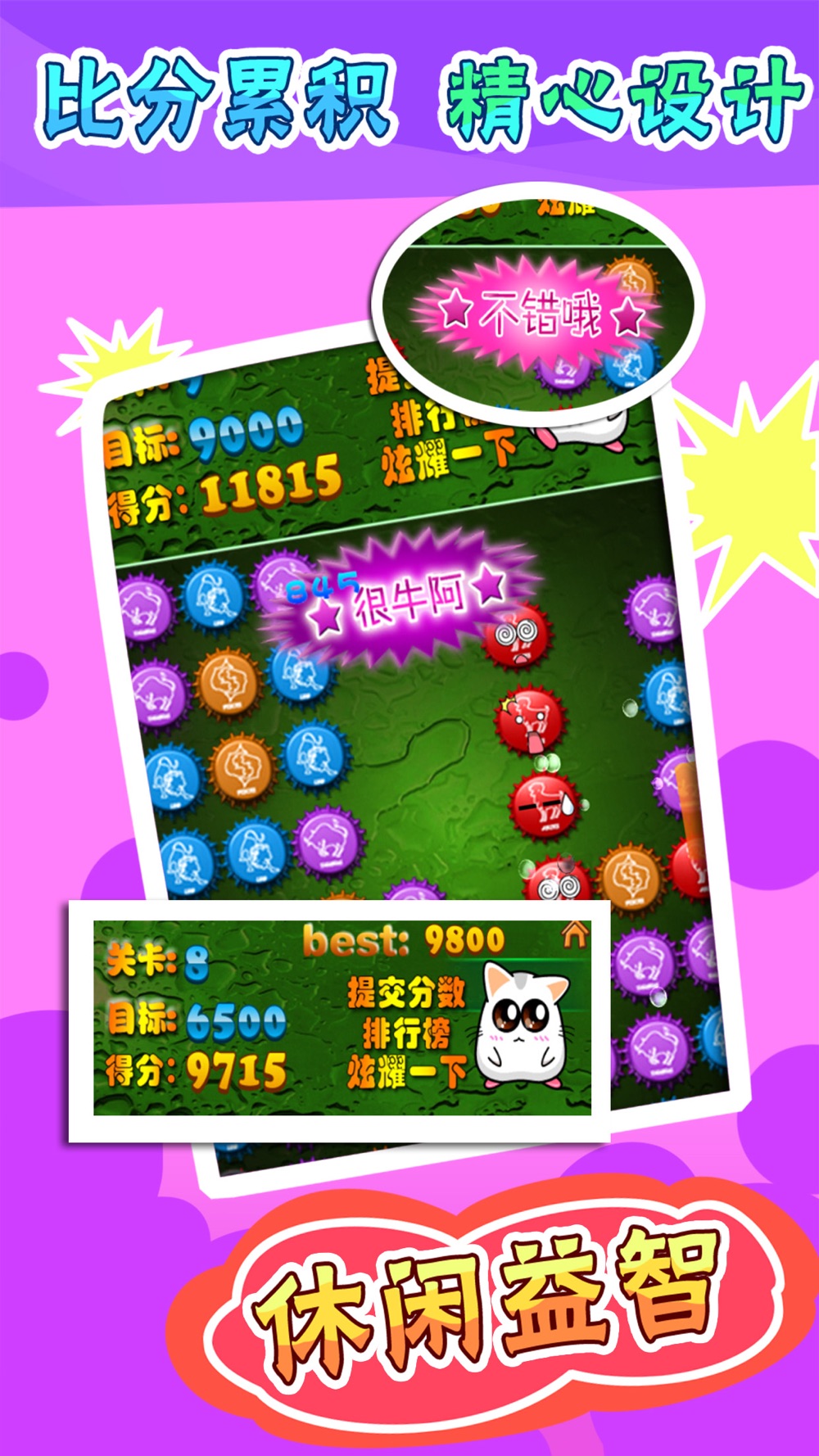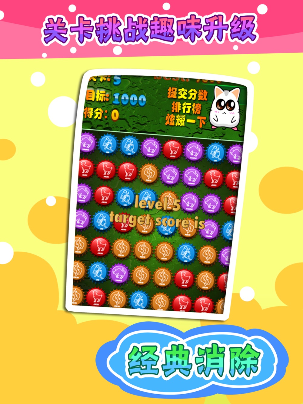 消除瓶盖(疯狂瓶盖)是一款很锻炼脑力的消除类益智休闲游戏,游戏的创意主要在于游戏吸引人的画面效果和音效方面,在消除游戏类型中,和普通的消灭星星游戏感觉完全不同,也会带给玩家新的惊喜。进入一个瓶盖的疯狂世界,享受游戏趣味。