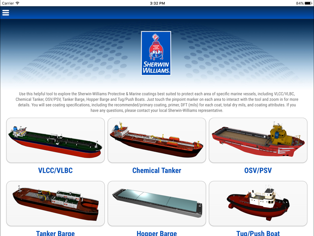 SeaGuard allows you to explore the best Sherwin-Williams marine and protective coatings for each area of specific marine vessels, including VLCC/VLBC, chemical tankers, OSV/PSV, tanker barges, hopper barges and tug/push boats. From accommodations to engine rooms, underwater hulls to commodity tanks, Sherwin-Williams has your marine coatings needs covered. With comprehensive coatings specifications for every area of the ship, SeaGuard is interactive, fast, and easy to use. Just touch the pinpoint markers to zoom in for details, including: