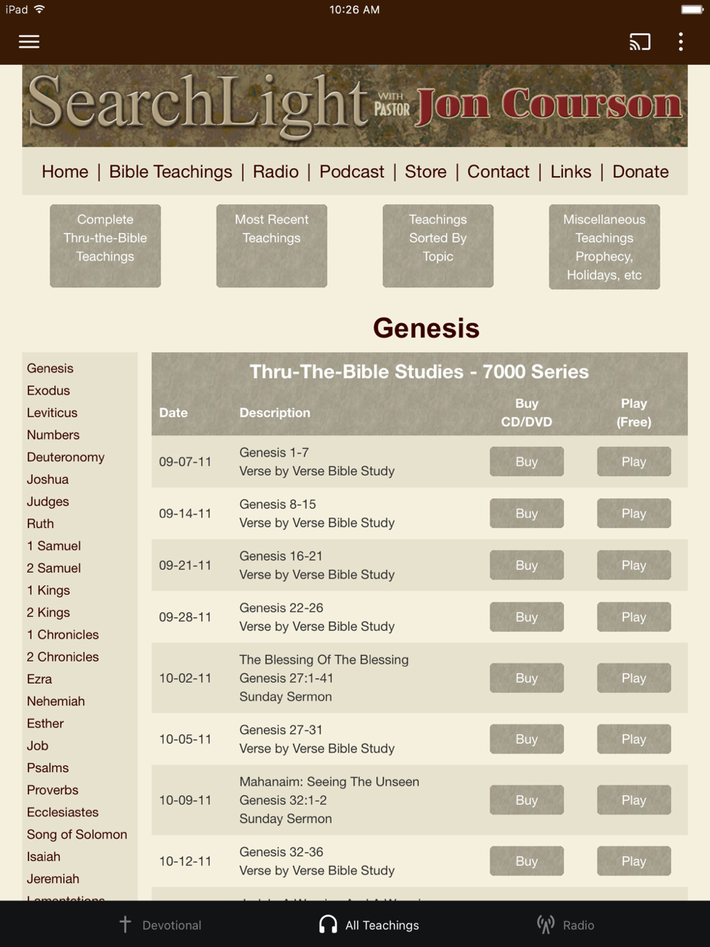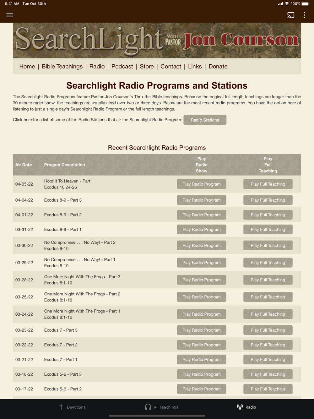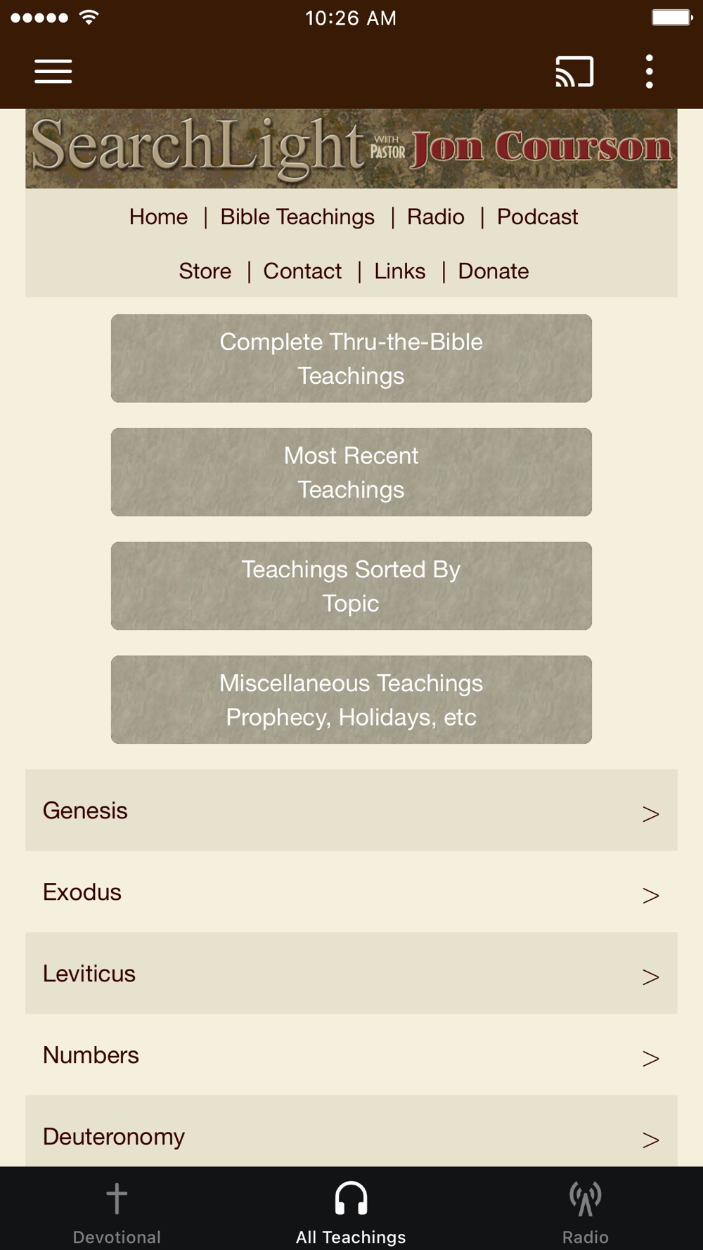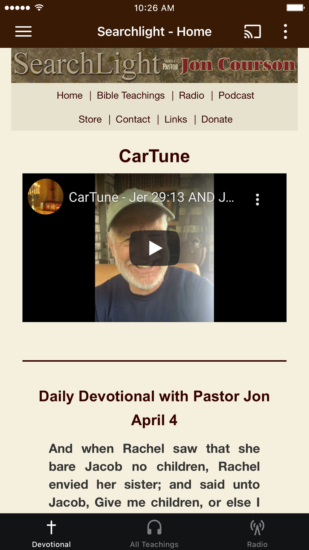 With this app, you can read Pastor Jon Courson’s daily devotional, get video or audio of any of his Thru-the-Bible teachings or listen to the daily Searchlight radio program.