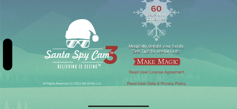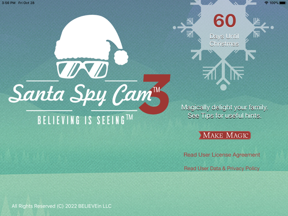 Santa Spy Cam™ 3 (SSC3) is the third major release of the Internationally acclaimed “proof of Santa” app, enabling parents (and grandparents) to capture live-action, high-quality video of Santa Claus, his friendly elves, and real reindeer in and around your home! With an almost limitless array of live-action video capability and customization options, Santa Spy Cam™ 3 provides “sightings” of Santa and his elves that children all over the world have always wanted in one easy-to-use app.
