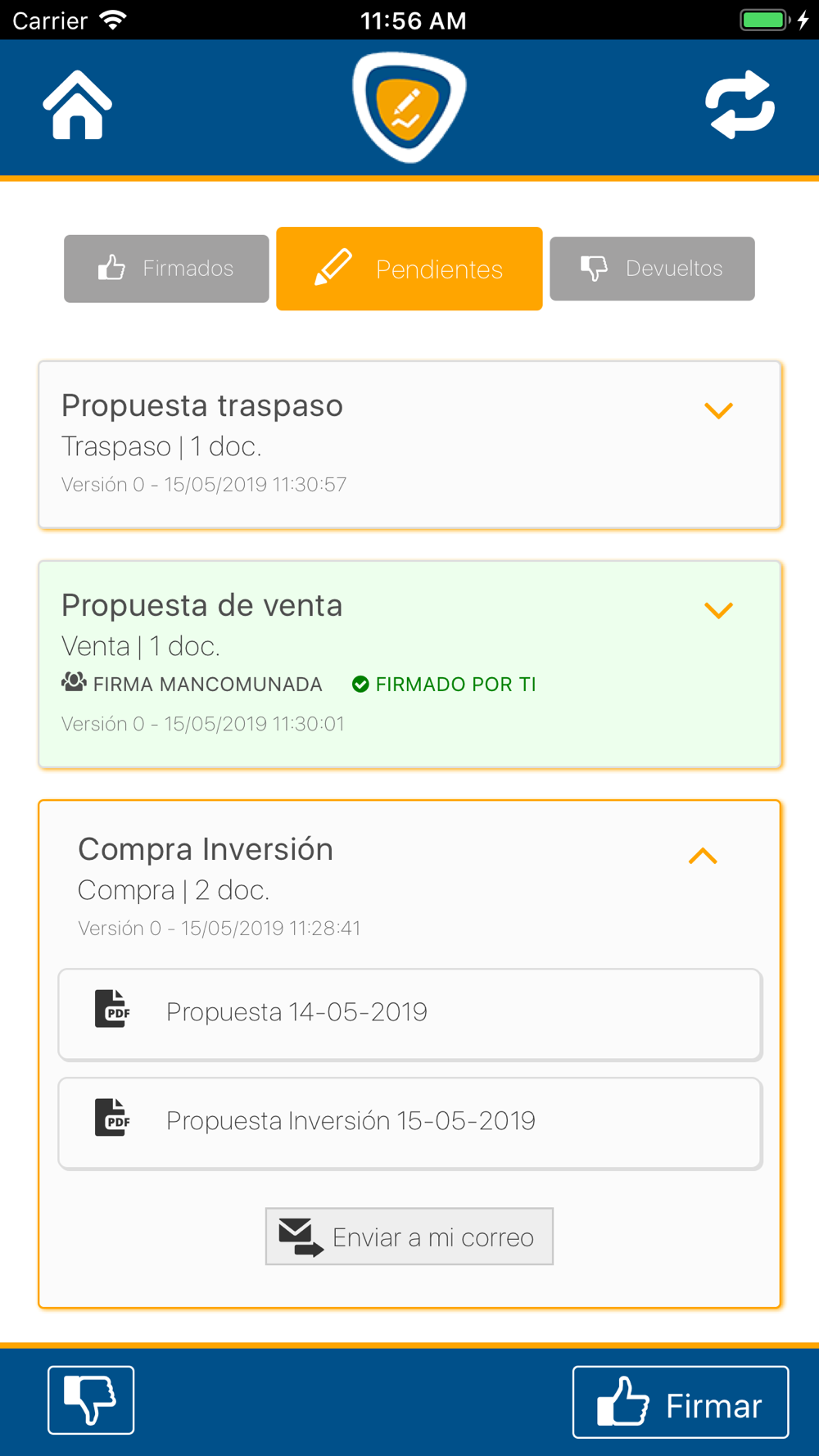 La aplicación incluye la firma de documentos mediante firma biométrica, certificado digital, DNIe, y "one time password" vía SMS así como la presentación de información personalizada para el usuario final.