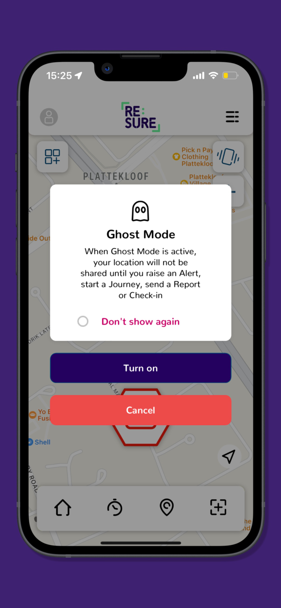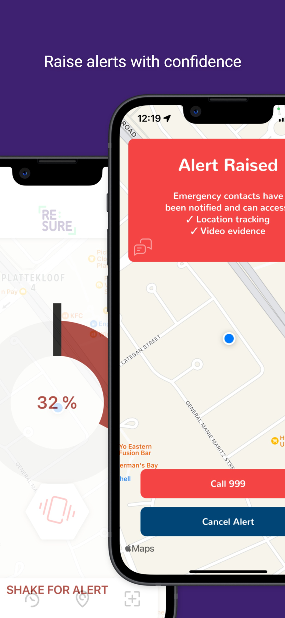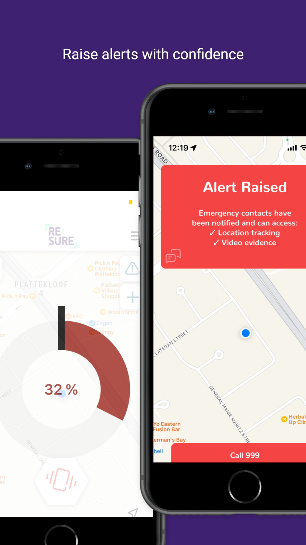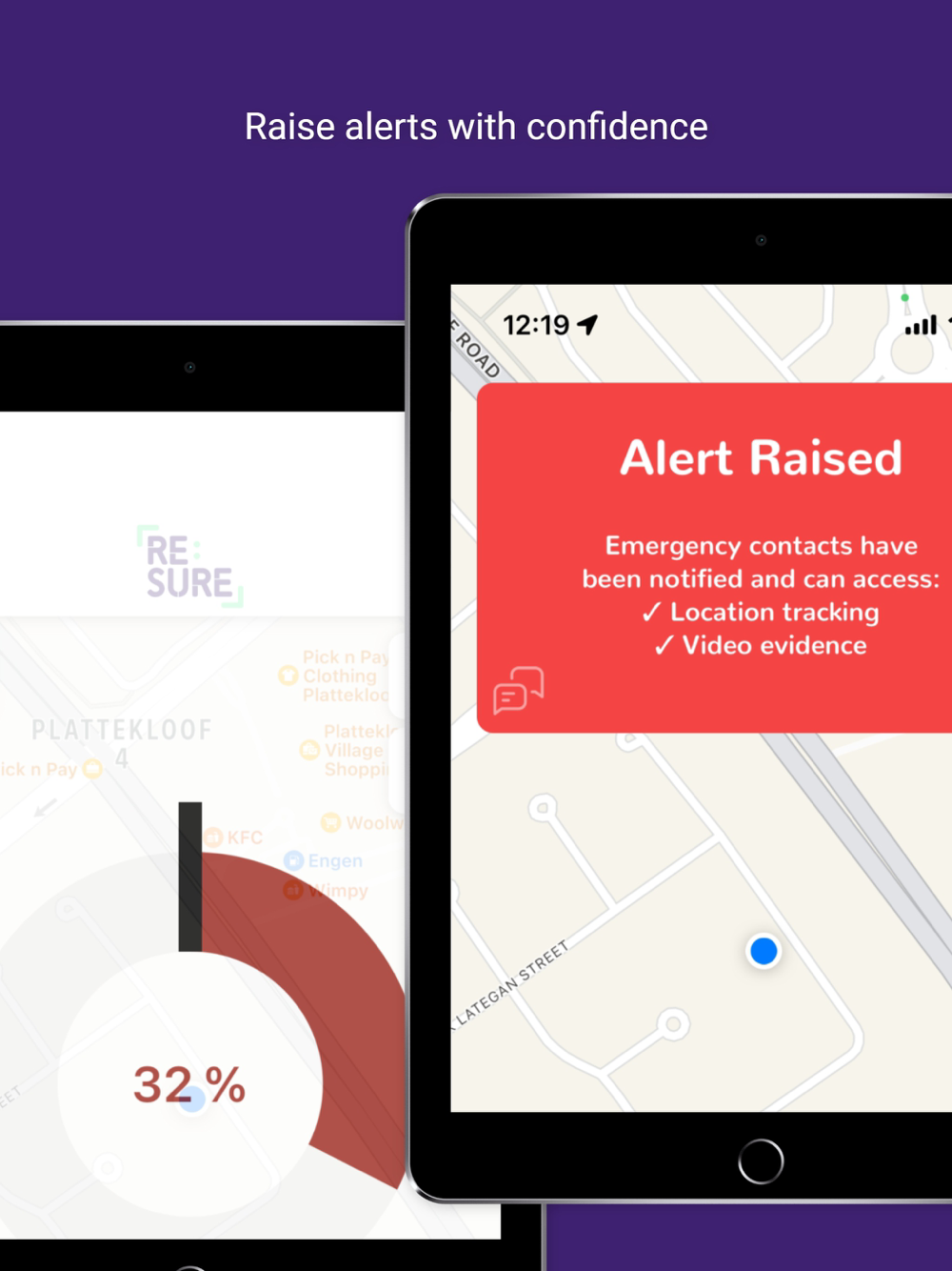 RESURE:GO is activated in a time of distress by either shaking or tapping the screen of your smartphone. Upon activation your phone immediately begins recording short video and audio clips, which, along with your exact location, are then sent to the RE:SURE Control Centre. Our highly trained operatives will analyse this information, contacting you, your emergency contacts and, when necessary, the emergency services in order to ensure your safety.