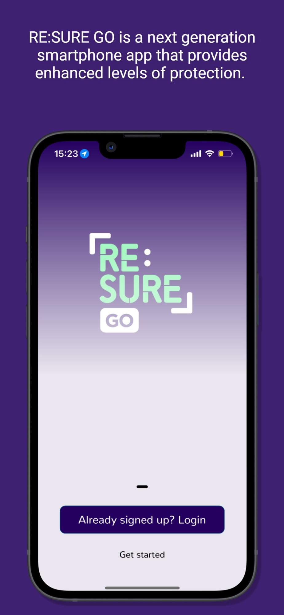 RE:SURE GO is a revolutionary app that gives you a previously unimaginable level of personal protection on the go. Wherever you are with your smartphone, you will be a button press away from help. When you activate RE:SURE GO, our 24-7 Control Centre will immediately receive an alarm giving your exact location and showing us audio and video of the event that has transpired.