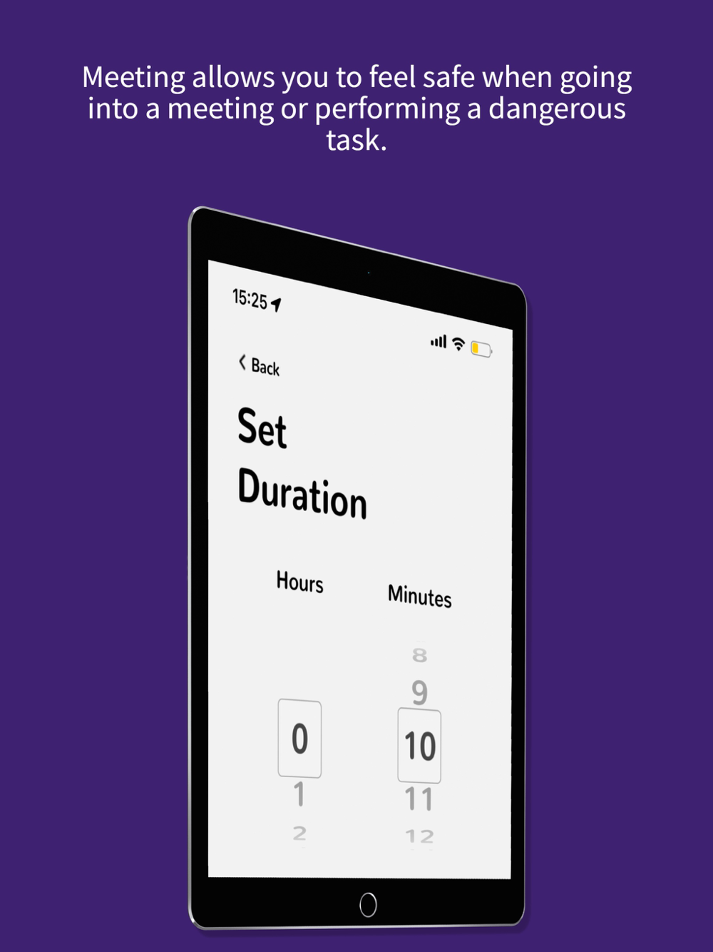 The meeting timer can be used as a simple and hassle free check in tool for staff when in remote locations or when going into a meeting with unfamiliar persons. For example