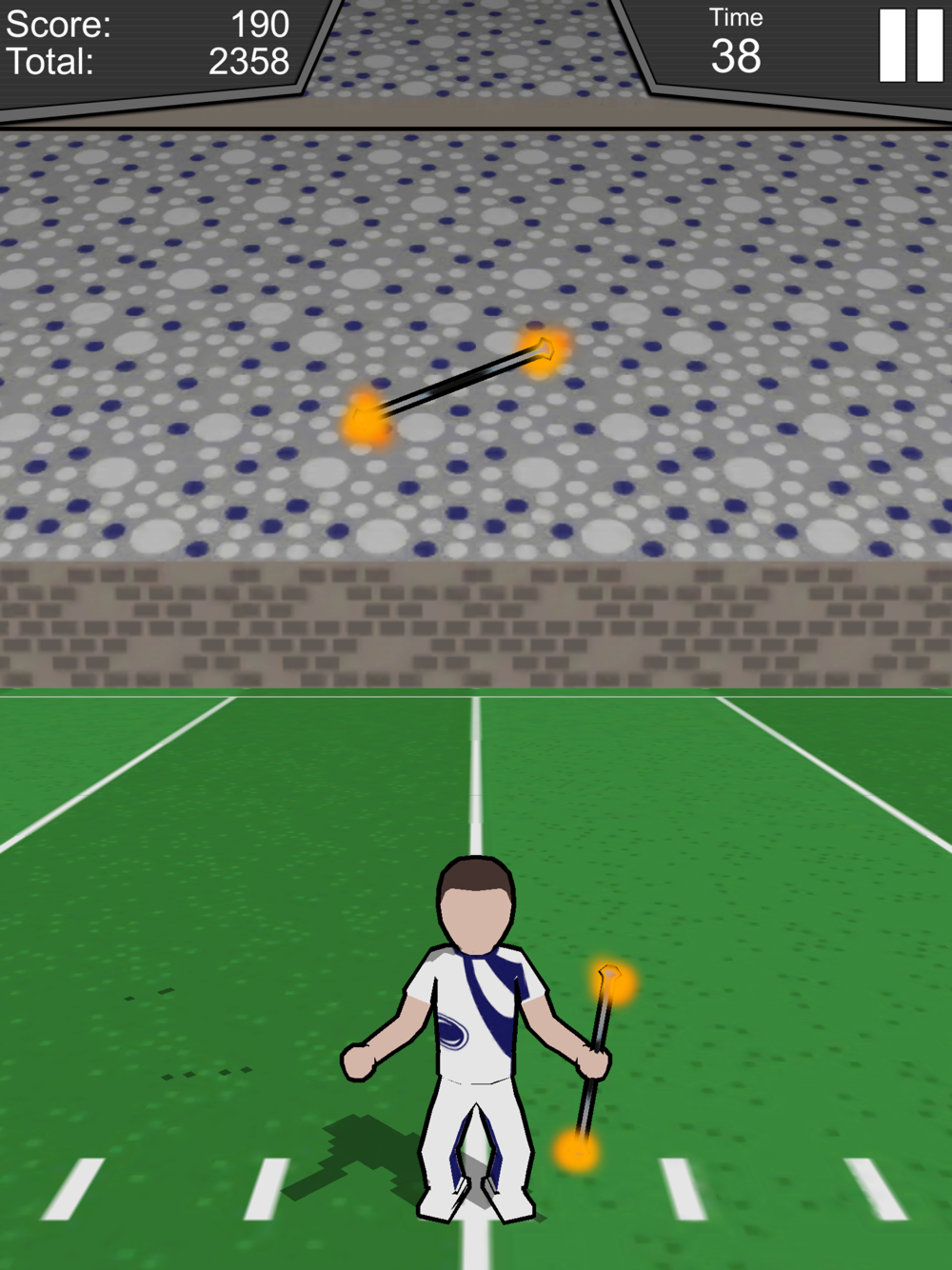 A new football season has started, but the team still forgot to leave the field before the Blue Band marched out. As the Drum Major, you must dodge the football players as you race through the band's ranks to land your signature Pregame flip—but this time in full 3D!