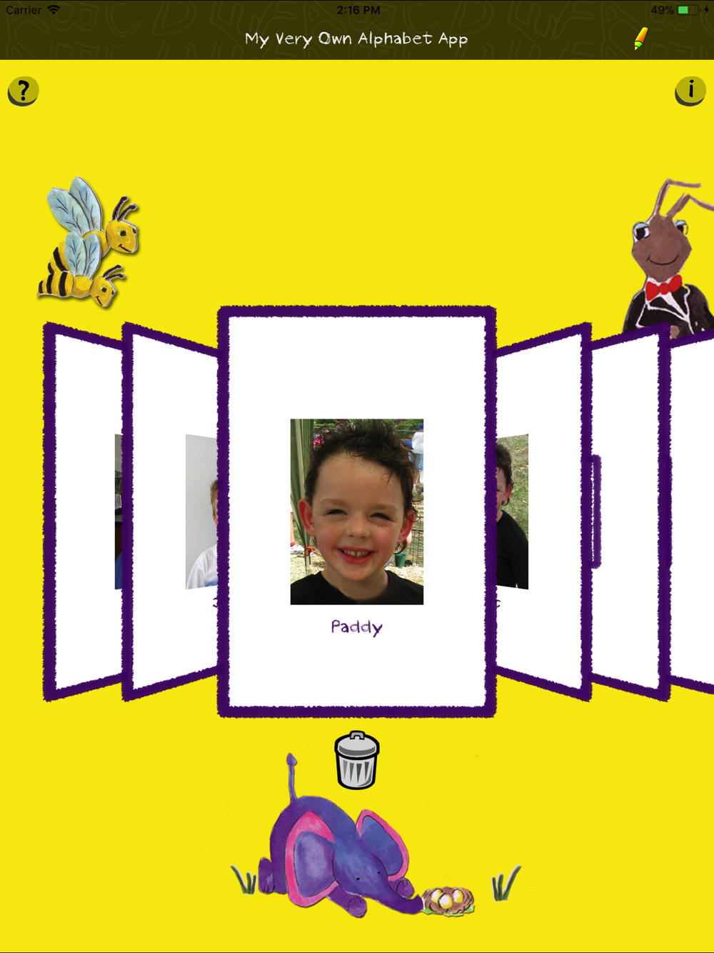 Home screen; Insert a picture of your child and their name.