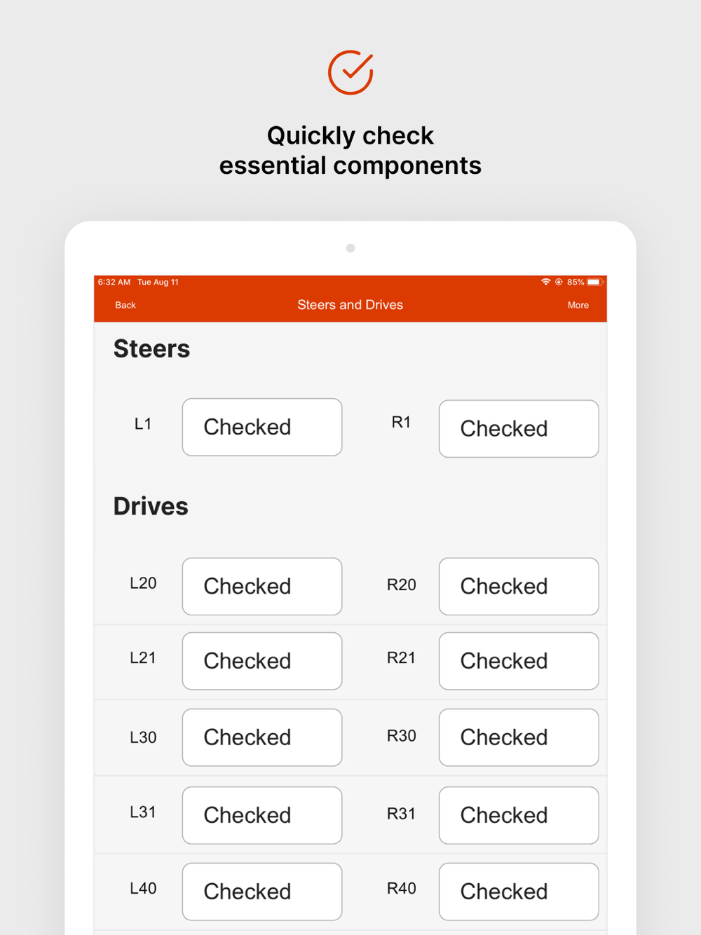 The app provides both mechanical and visual checkpoints for inspecting heavy equipment. Utilizing the Heavy Equipment Inspection App you will keep machines in a good working order and in a safe condition.