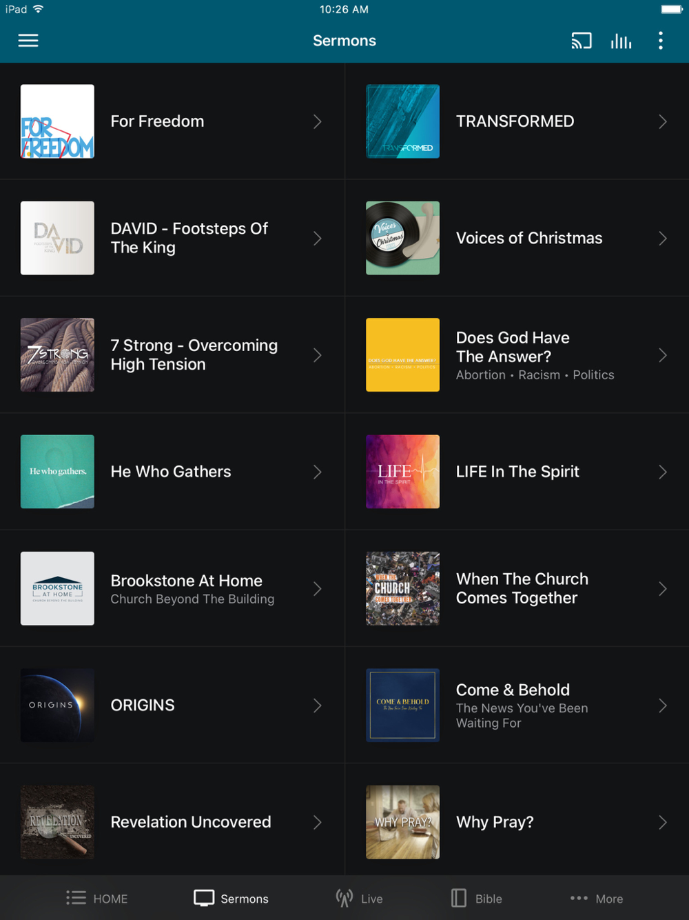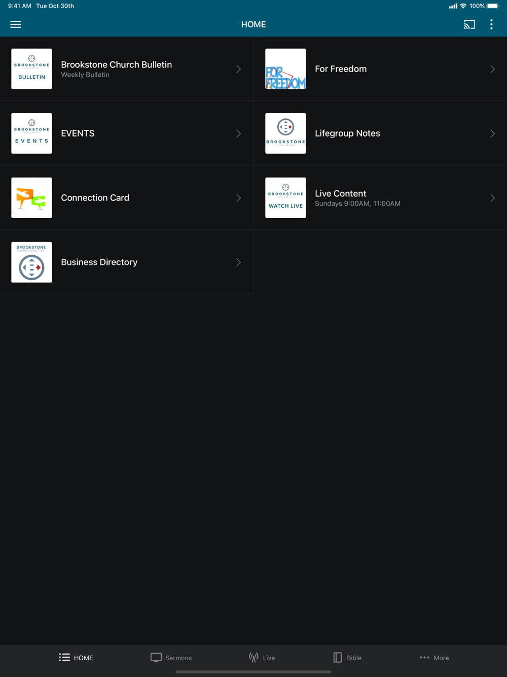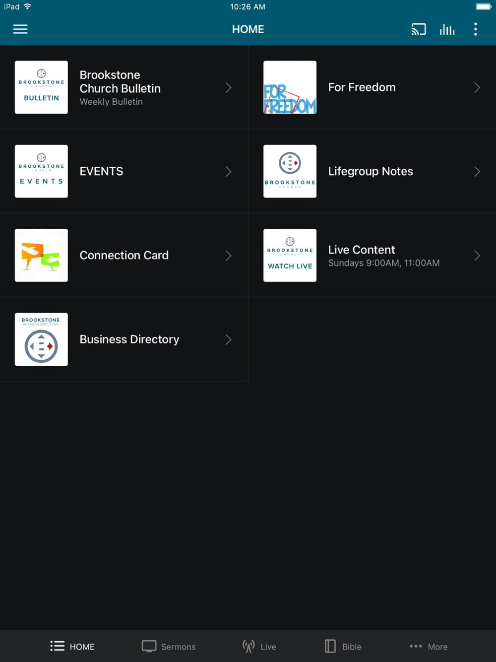The Brookstone Church app was developed with the Subsplash App Platform.