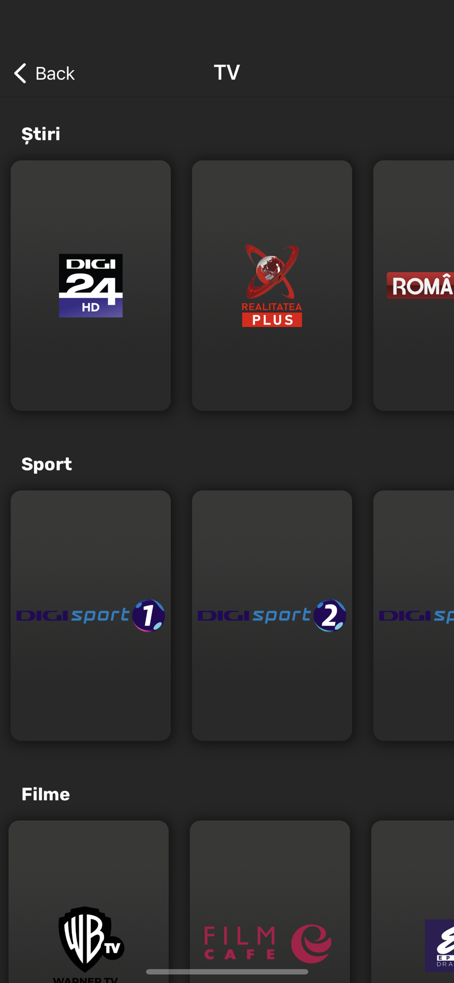 * Digi TV channels: Digi Sport 1, 2 si 3, Digi24, Digi Film, Digi World, Digi Life, Digi Animal World, UTV.