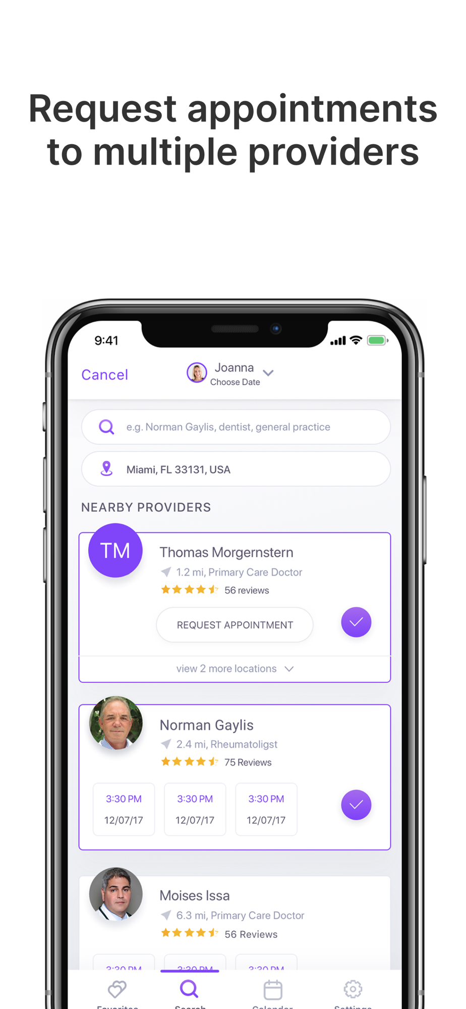 Select 'Find Provider' to favorite providers you often visit to make the appointment request in a few touches.