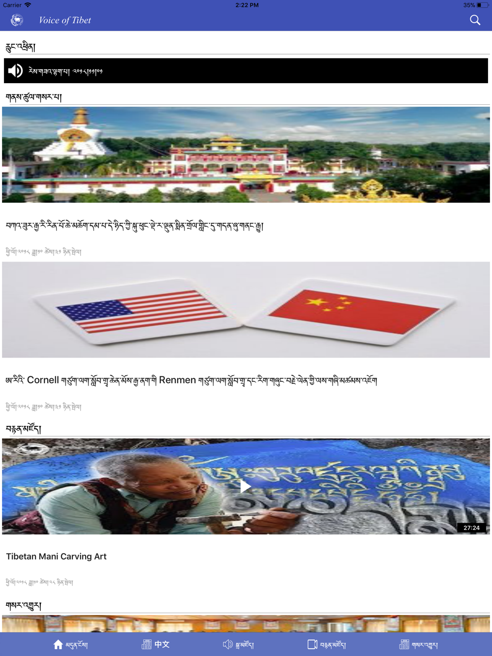 Every day Voice of Tibet broadcasts a 30 minutes news service in the Tibetan langauge and a 15 minutes news service in Mandarin Chinese. The programs are produced by Tibetan journalists stationed in several countries, with the main editorial office in India. Voice Of Tibet programs mainly focus on Tibet related issues, following the development inside Tibet closely as well as reporting on the activities and working of Exile democratic institutions.