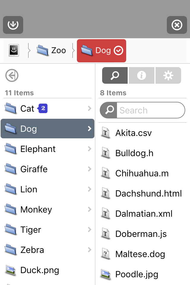 To select a file or a directory to compare, tap the red or blue highlighted button in Path bar.