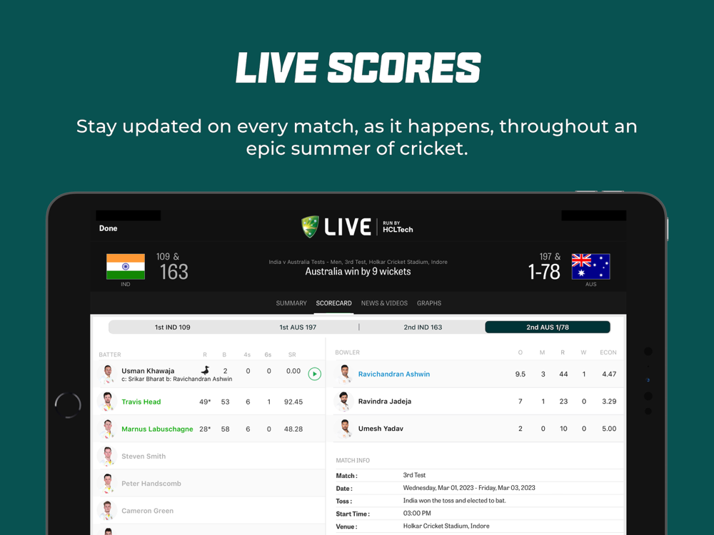 Cricket Australia Live is your No.1 destination for live cricket scores, match coverage, breaking news, video highlights and in-depth feature stories.