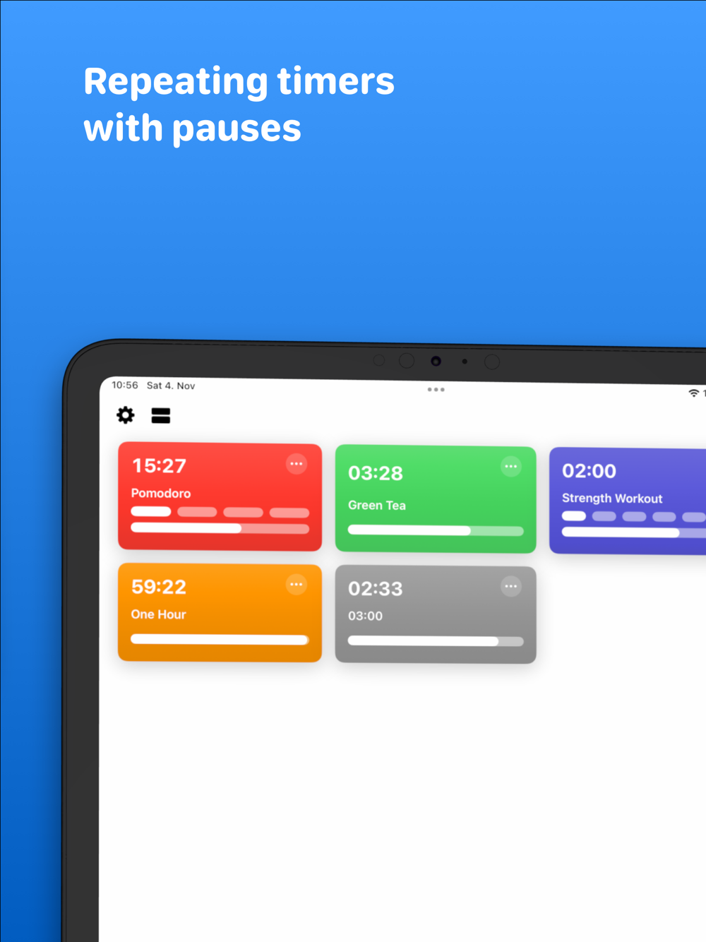 See the progress or start timers right from your home screen.