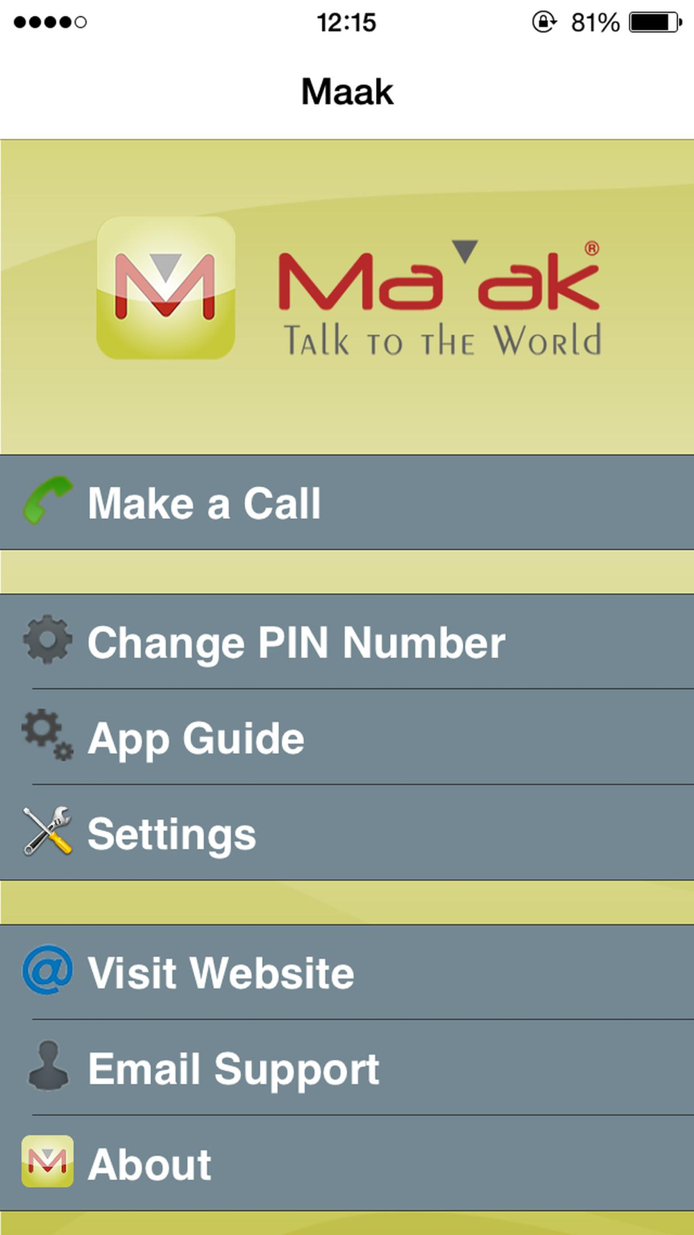 After installing this app, any international call made will use the stored Maak Card automatically.