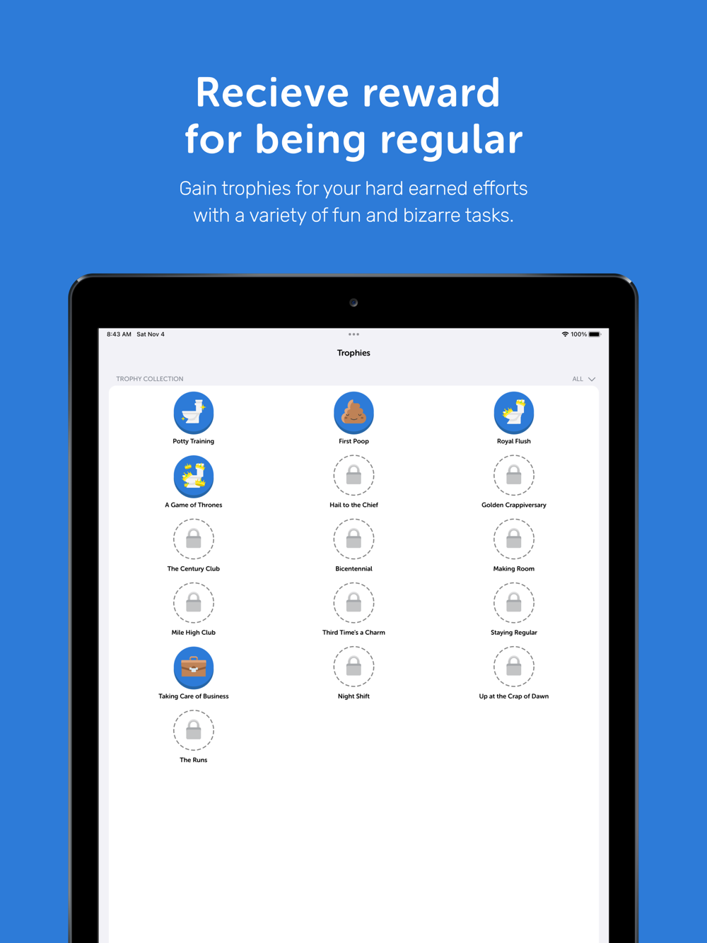 You can find yourself earning trophies on the toilet like The Runs, Up At The Crap Of Dawn and Staying Regular.