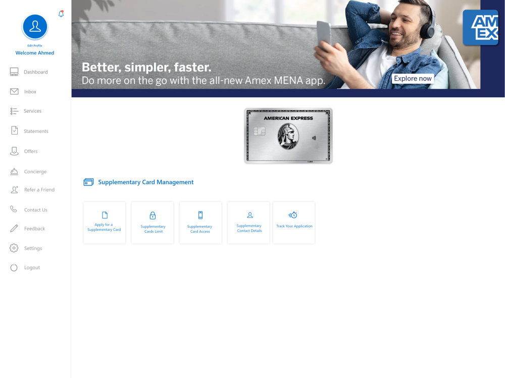 The Amex MENA app is for Personal and Corporate Cards issued by American Express Middle East. If your Card is not issued by American Express Middle East, then you will not be able to log-in to the Amex MENA app.