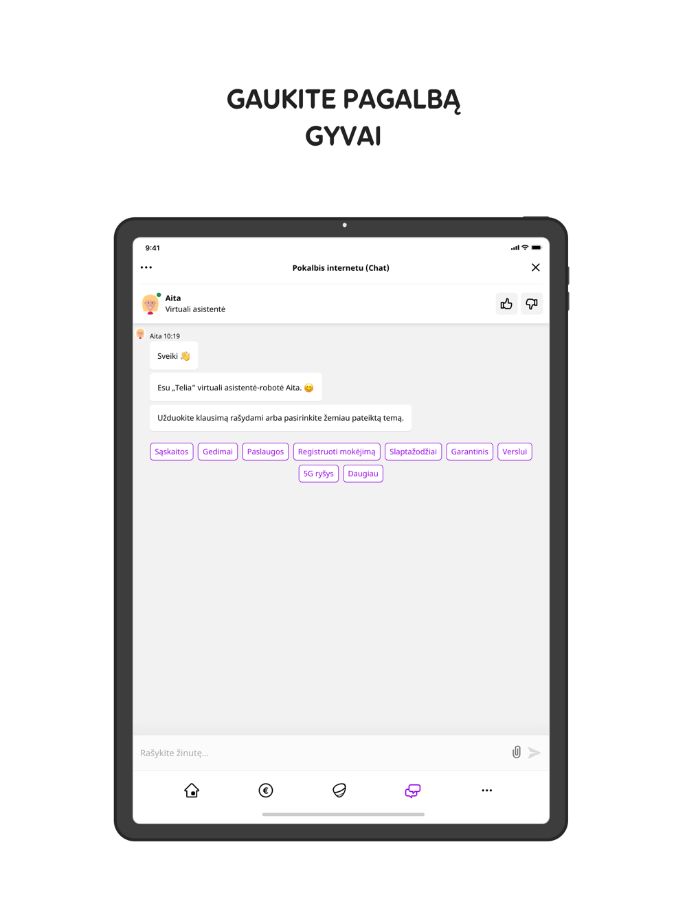 Naudodamiesi „Mano Telia“ programėle Telia privatūs klientai gali: