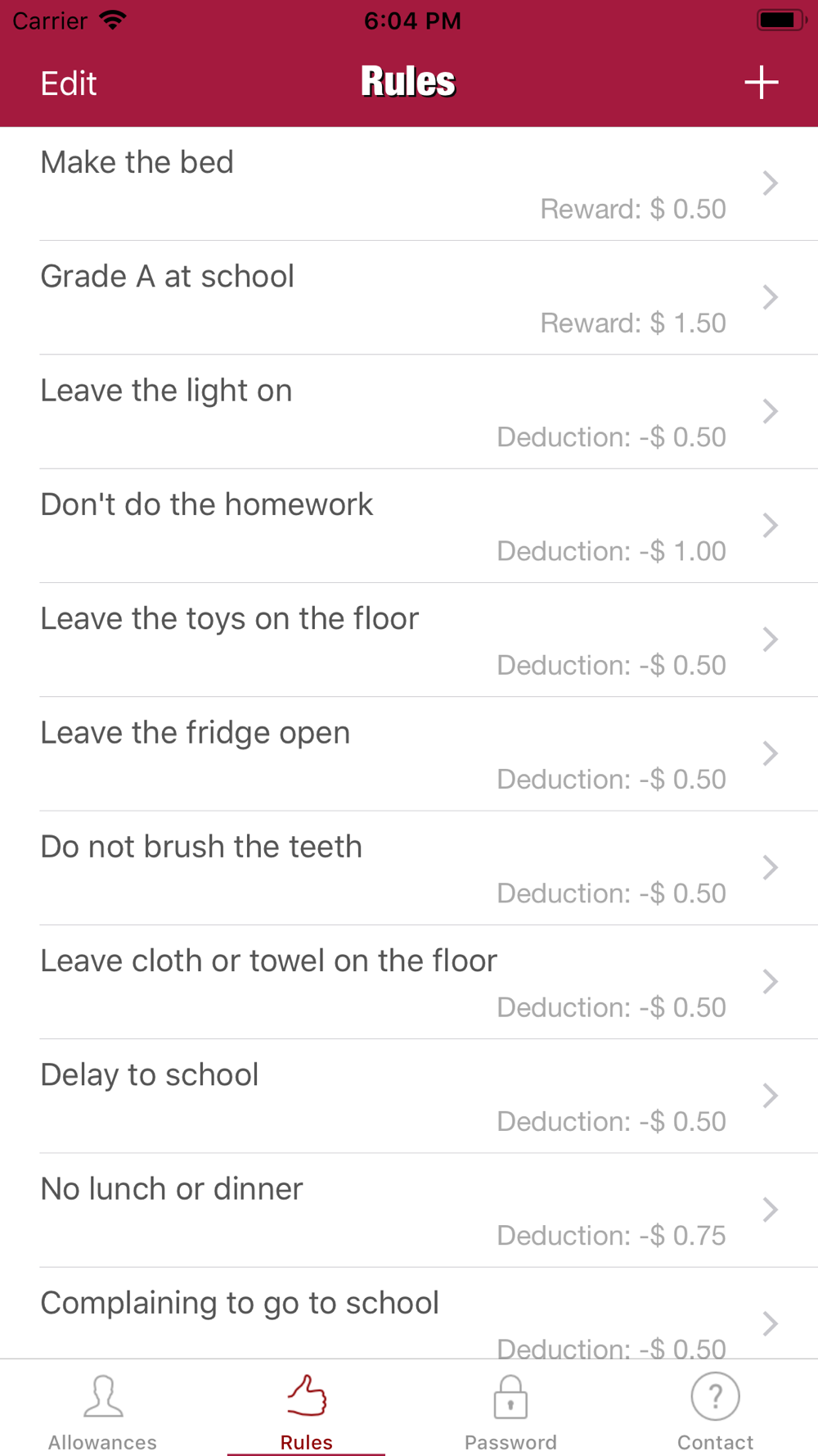 The "Allowance Management for Parents" is an application that helps you track your child's allowance if you use a methodology of deductions and rewards.