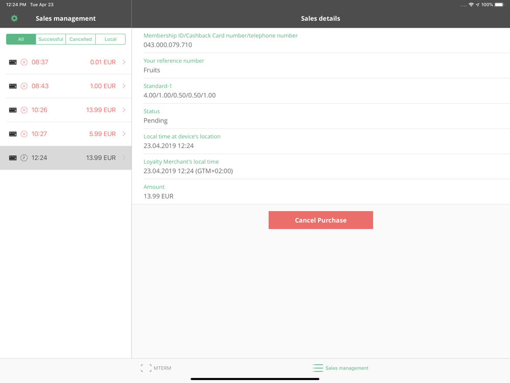 With the MTERM app, you have access to a tool for an efficient use of the Cashback Solutions customer loyalty program. The app comes with a range of handy functions for Cashback World Loyalty Merchants: