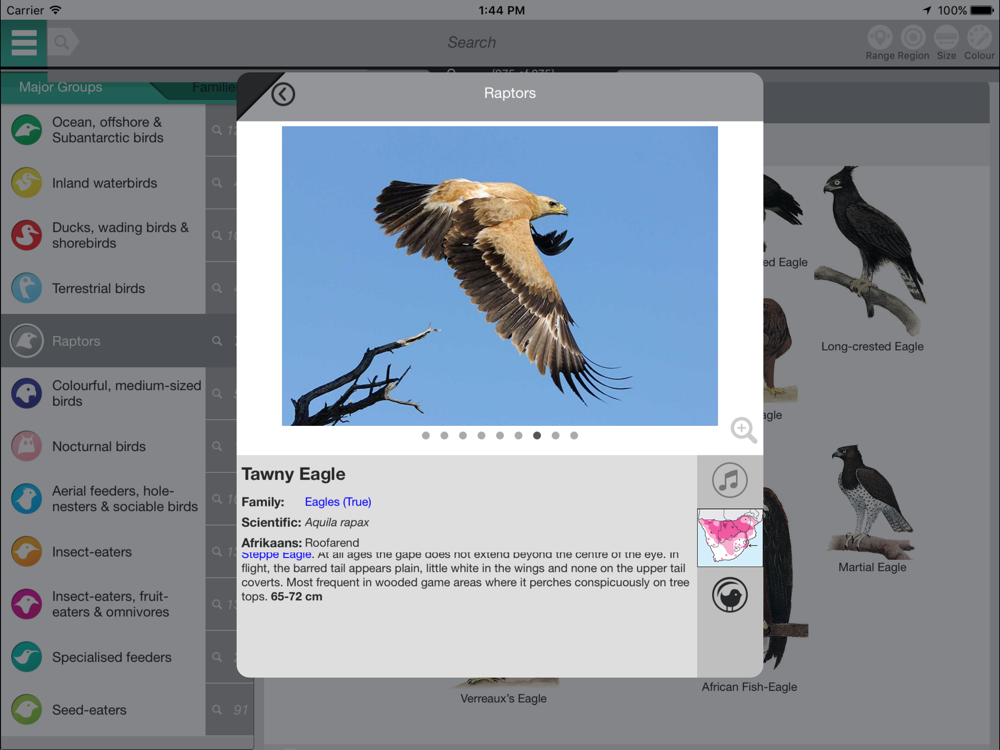 • Search by common, scientific and Afrikaans bird names.