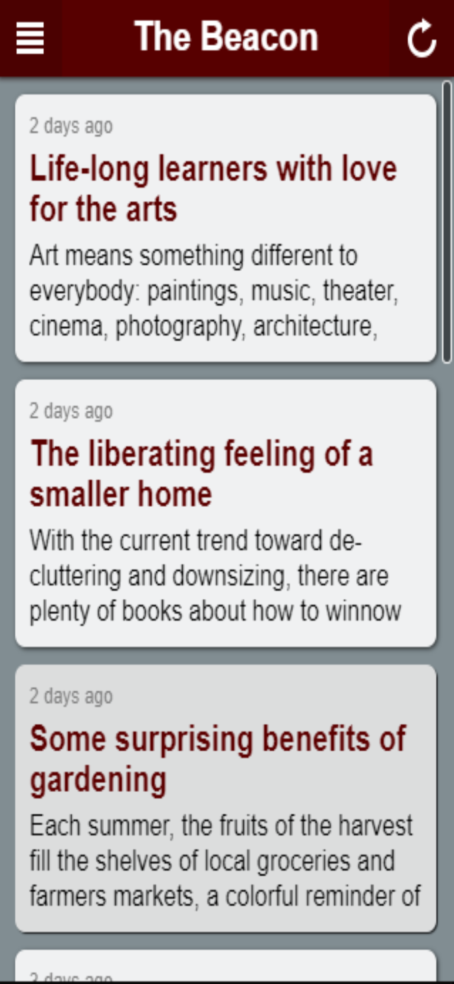 This is a Mobile Application of TheBeaconNewspapers.com. This app allows you to use / view the website in an easier to use format than the full website. You will be able to view current articles and full versions of each edition, along with contact and about the Beacon pages.