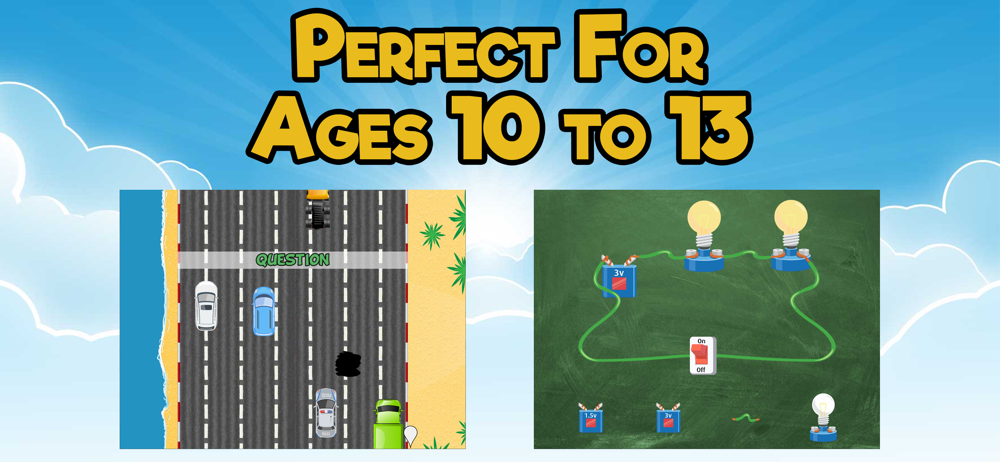 Perfect for 6th grade kids and students who need a fun and entertaining educational game to play. This bundle of games helps your child learn important math, language, algebra, science, and STEM skills used in sixth grade all while having fun! 6th Grade teachers around the world use this app with their students to help reinforce math, language, and science subjects.