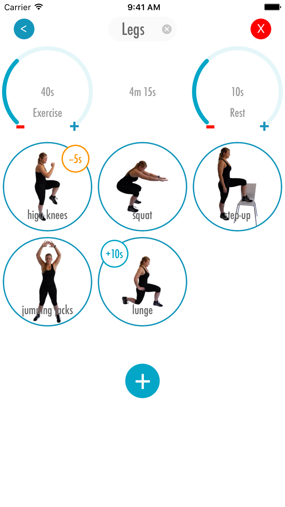 - Make any number of your own workouts, tweaking each exercise length and rest intervals as you like