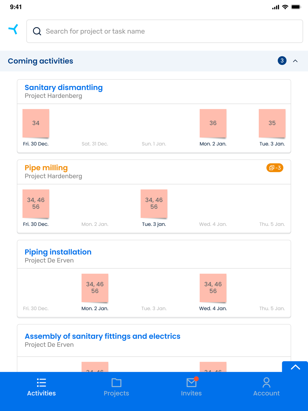 From now on, you will always have the latest version of the schedule in your pocket. And have you finished your work on site? Then simply tick off in the app and keep your Site Manager informed of your progress.