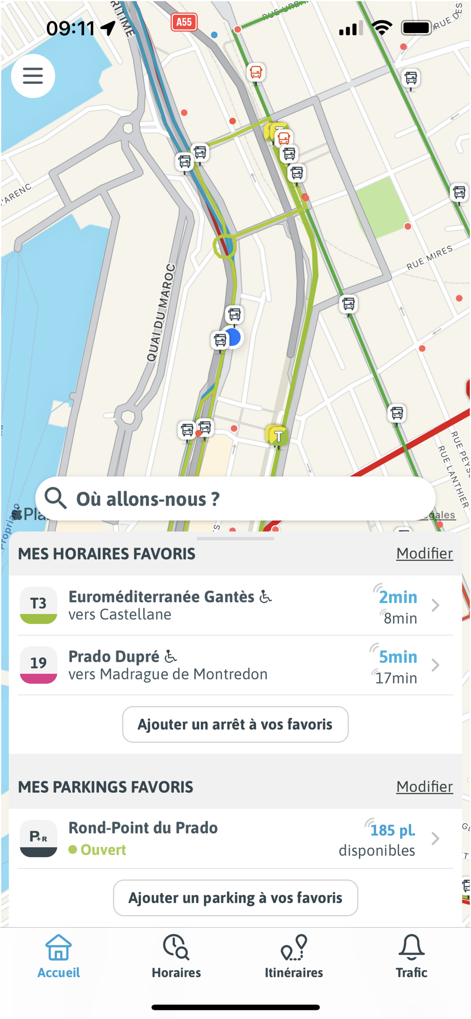Accédez à vos horaires et parkings favoris en un coup d'œil