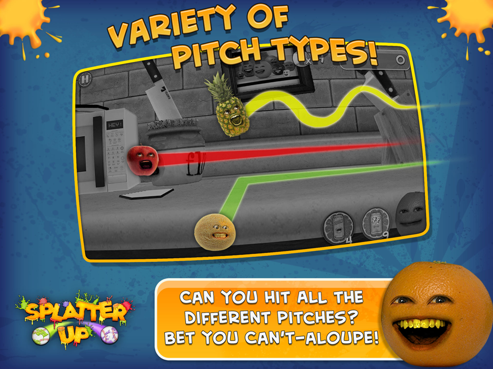Join the Annoying Orange and his entourage for this splatterific home run derby game that is sure to put you in stiches. Swipe for the fences and induce maximum pain (and points) on unsuspecting fruits like Apple, Banana and Cantaloupe in the Kitchen of Casualty.