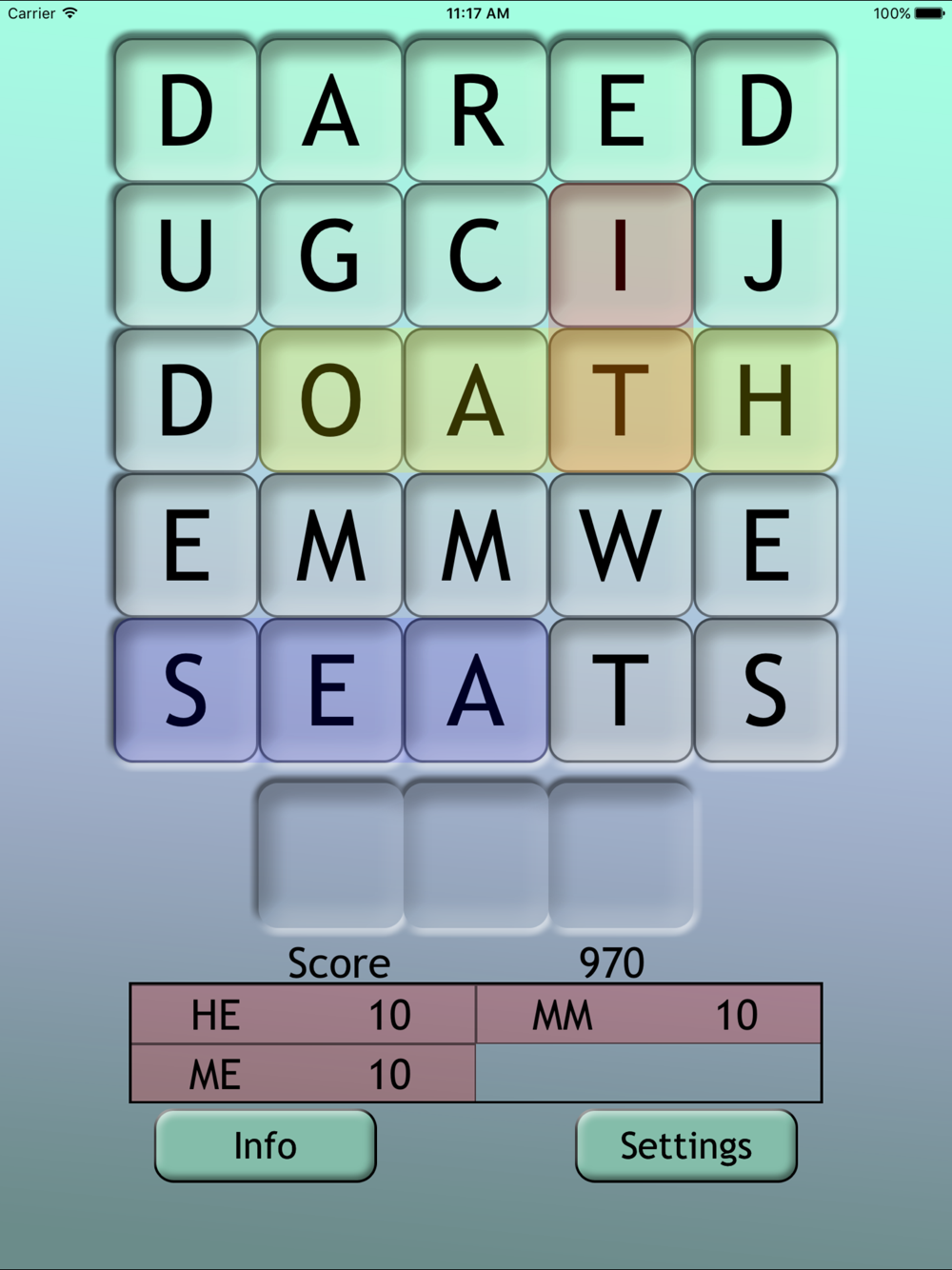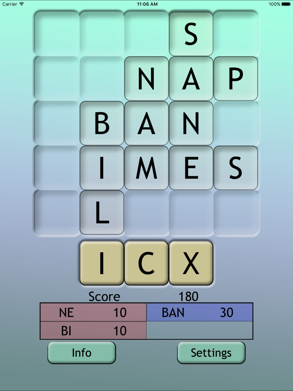 Word Kit is a twist on the typical grid based word game. Instead of finding words, your job is to build them. Let the computer do the work of finding the words.