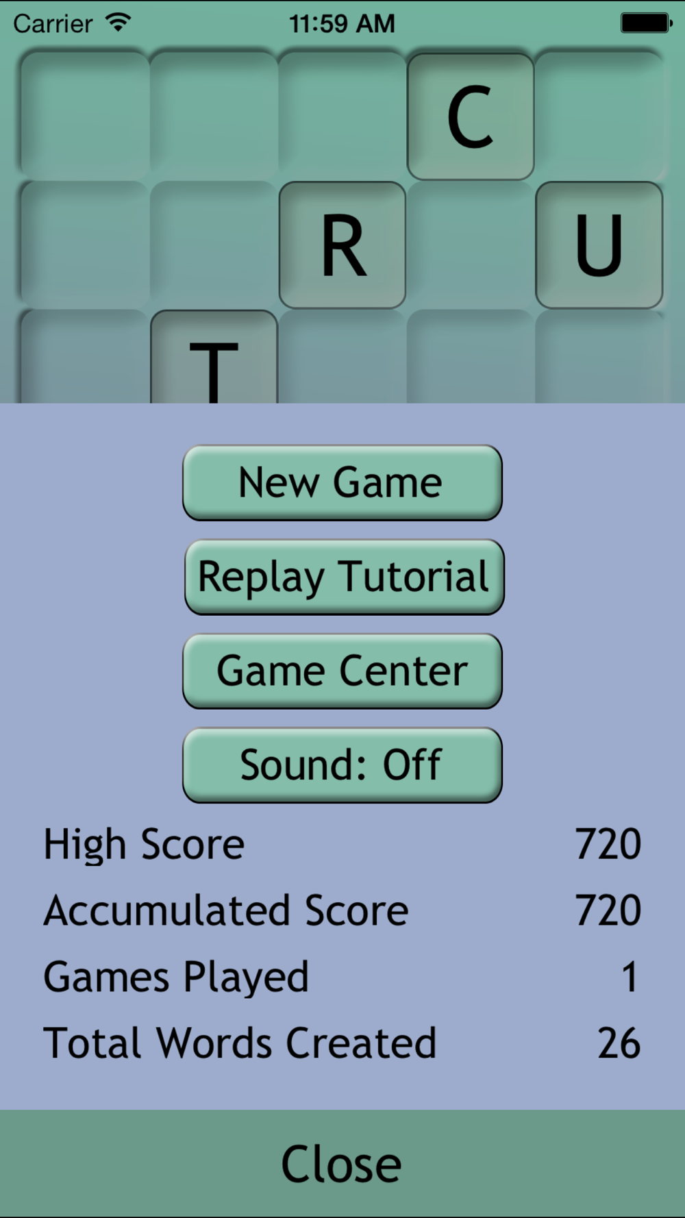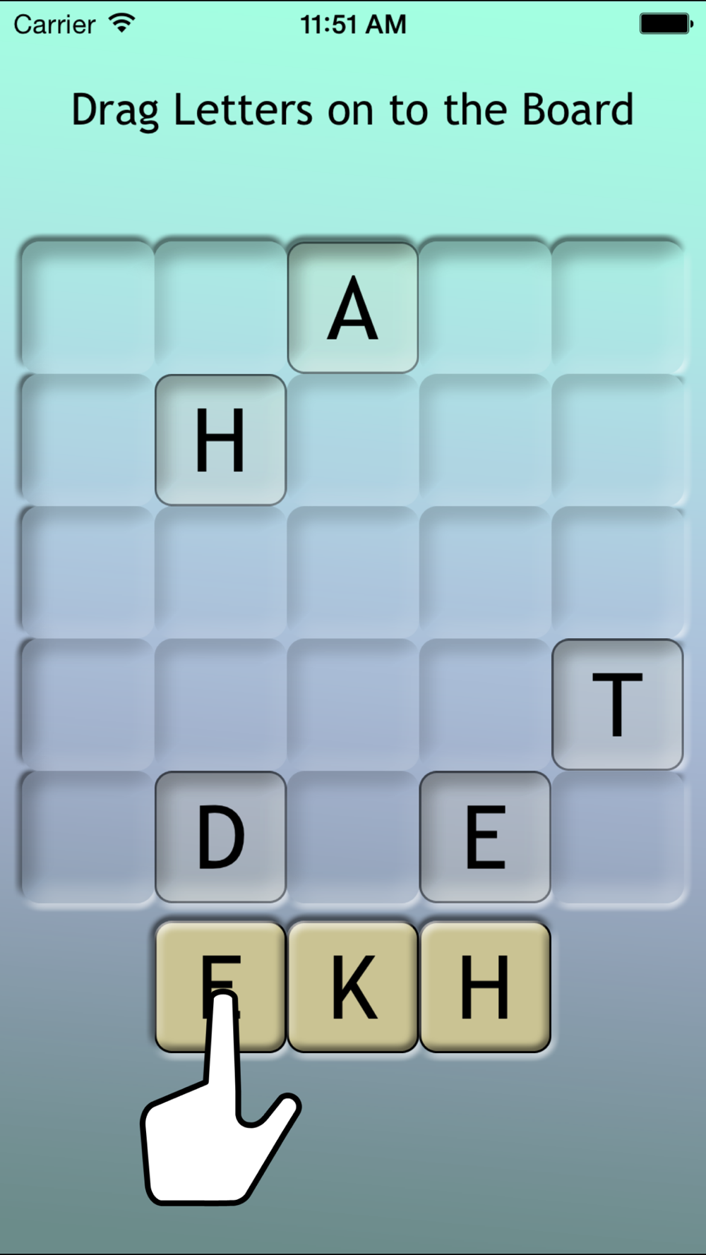 Choose one of three letters from your "Kit" and place them on to the 5 by 5 board. As you make words the computer will find them and give you points.