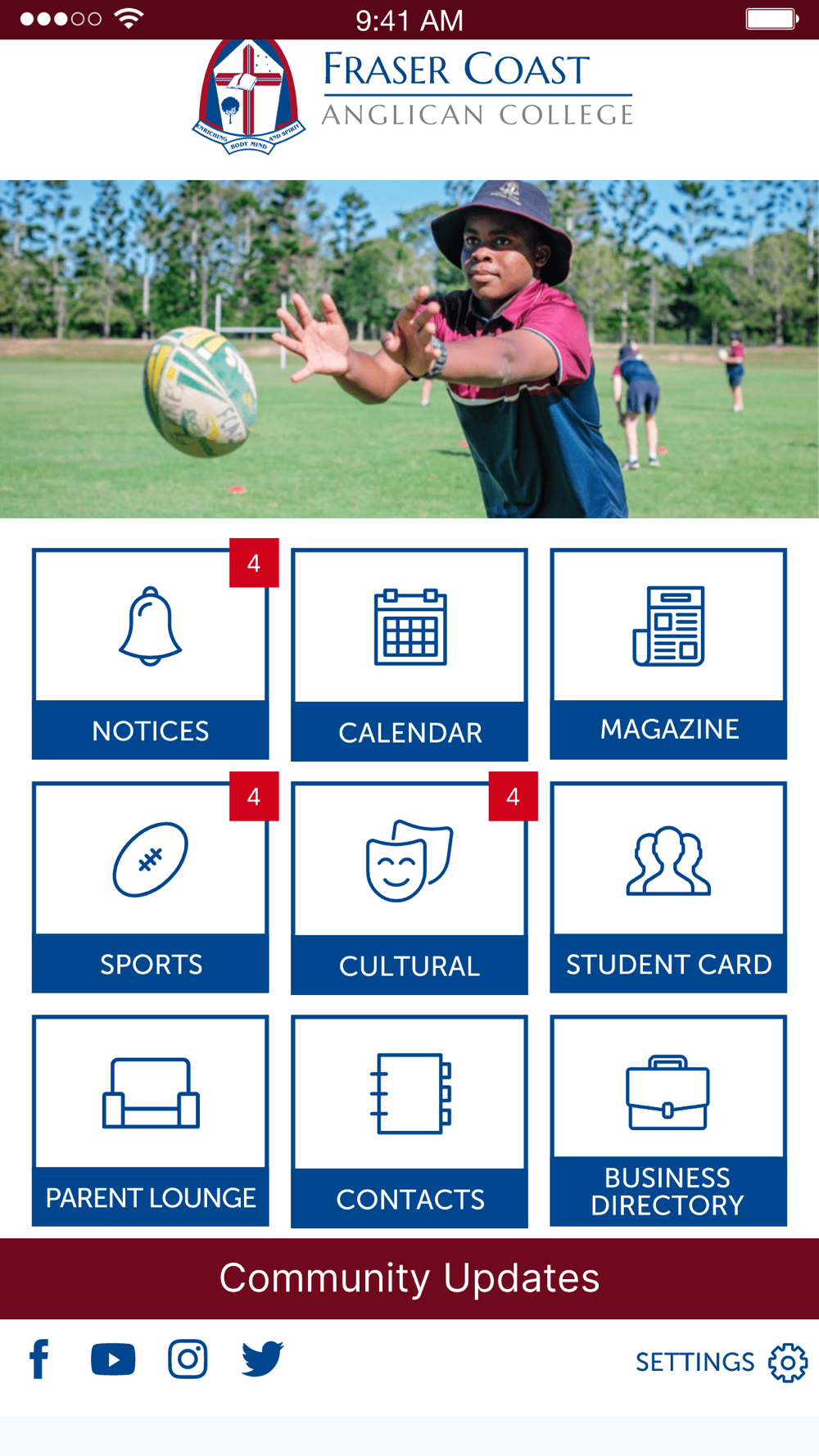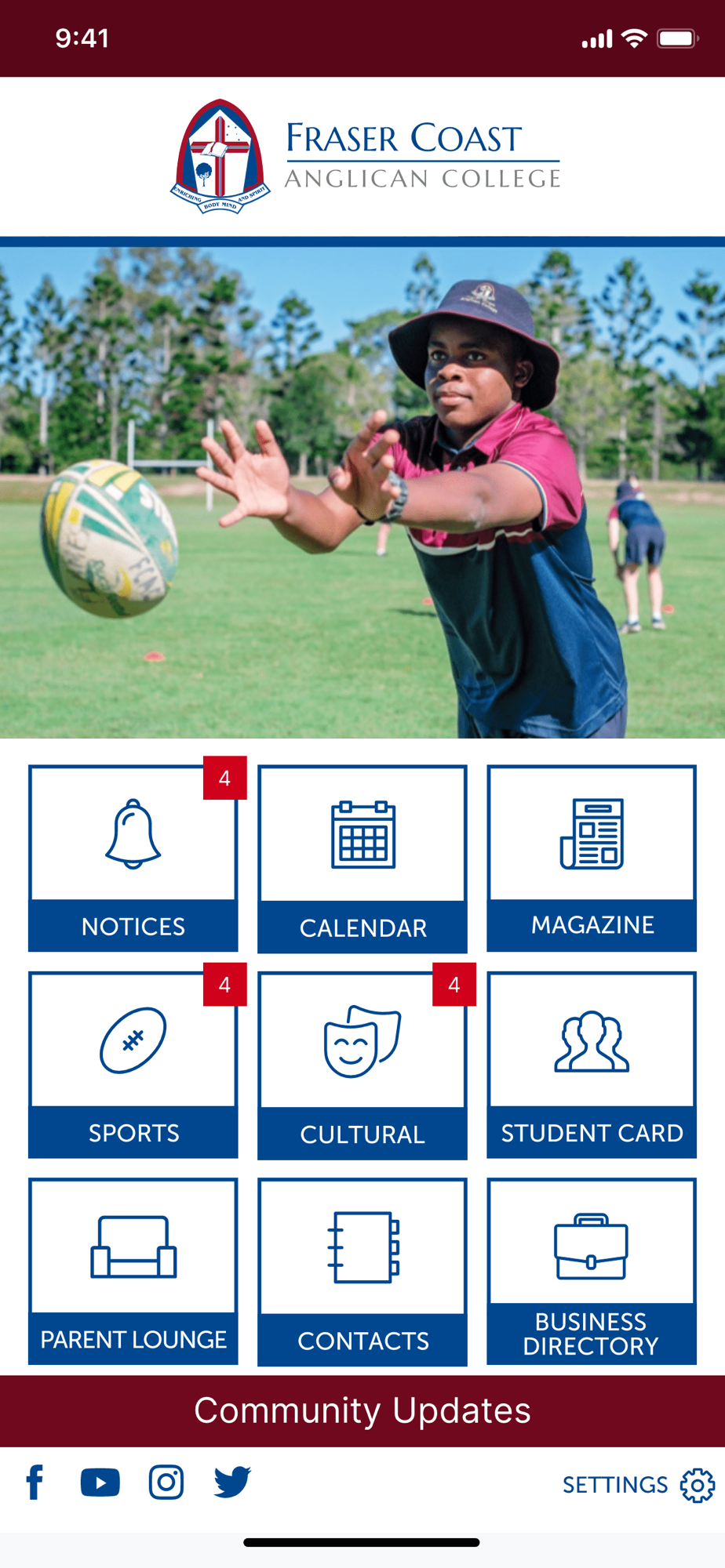The Fraser Coast Anglican College app is updated daily to ensure that the school community is able to keep their finger on the pulse of the school. The app includes the following information: